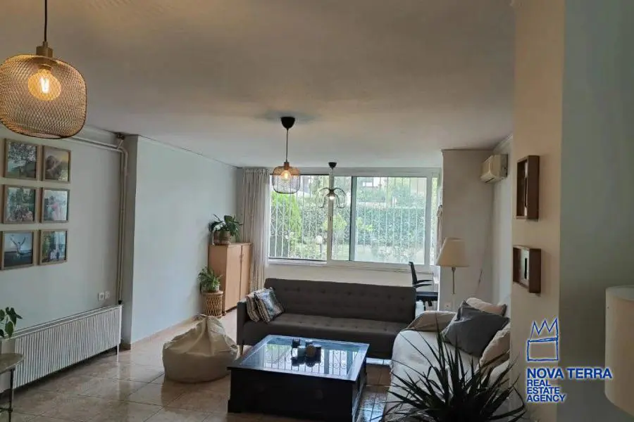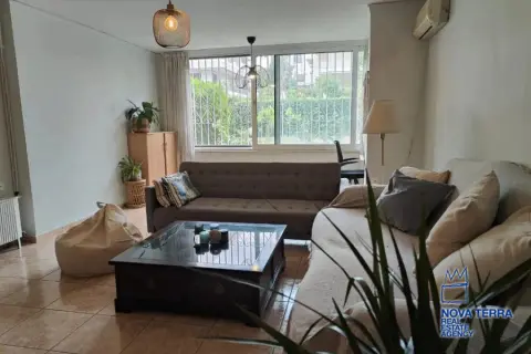 Ηλιόλουστο Ισόγειο διαμέρισμα, με κήπο περιμετρικά του διαμερίσματος. Βρίσκεται σε ήσυχη περιοχή. Ωφέλιμος χώρος 105 τμ. Το διαμέρισμα έχει 2 υπνοδωμάτια, καθιστικό, κουζίνα, μπάνιο. Επίσης, διαθέτει μεγάλη ηλιόλουστη κουζίνα με καθιστικό, τραπεζαρία και με πολλούς αποθηκευτικούς χώρους. Το διαμέρισμα διαθέτει κλιματιστικά, καινούργια θυροτηλεόραση, διπλά τζάμια, σίτες για τα κουνούπια, μεγάλες ντουλάπες, παντζούρια και πόρτα ασφαλείας.