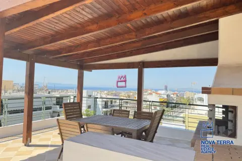 Γλυφάδα, ρετιρέ οροφοδιαμέρισμα 4ου ορόφου με απεριόριστη θέα θάλασσα - βουνό και αποκλειστική χρήση ταράτσας 60 τ.μ. με πέργολα, κουζινάκι και BBQ. Το διαμέρισμα είναι αυτόνομο, διαθέτει 3 μπαλκόνια (2 μεγάλα και ένα βοηθητικό) είναι διαμπερές και προσόψεως, φωτεινό και πολυτελές. Αποτελείται από σαλόνι με θέα θάλασσα και τζάκι, ανοιχτή κουζίνα πλήρως εξοπλισμένη με εντοιχισμένες ηλεκτρικές συσκευές Neff, τρία υπνοδωμάτια όπου το ένα είναι master με δικό του μπάνιο, μεγάλο μπάνιο με jacuzzi καιwc. Η θέρμανση είναι αυτόνομη με πετρέλαιο, κλιματισμό (fujitsu air conditioning), ηλιακό θερμοσίφωνα και αλουμίνια βαρέως τύπου με διπλά τζάμια securit. Τα πατώματα είναι παρκέ ( ξύλου ανοιχτού χρώματος Α ποιότητας) σε όλους τους χώρους πλήν των μπάνιων που είναι με κεραμικά πλακίδια. Επίσης, περιλαμβάνει σίτες, τέντες περιμετρικά στα μπαλκόνια, κλειστή θέση στάθμευσης 25 τ.μ. (2 αυτοκινήτων)και μια αποθήκη υπογείου 10 τ.μ. με διαμορφωμένους αποθηκευτικούς χώρους.