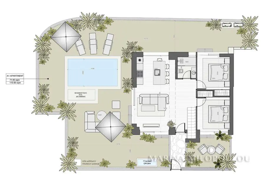 ΓΛΥΦΑΔΑ 'Ανω (λίγο κάτω από την Λ. Γούναρη) σε κτίριο υπό κατασκευή, Μεζονέτα Ισογείου - Υπογείου, 111 τμ, στο πίσω μέρος του κτιρίου (Νότιο) με ιδιωτικό κήπο και πισίνα. - Ισόγειο, 72 τμ, ενιαίος χώρος υποδοχής - τραπεζαρία - κουζίνα, 2 υ/δ 1 μπάνιο. Άμεση πρόσβαση στον κήπο με την πισίνα. - Υπόγειο, 39, τμ, με 1 master υ/δ, κουζινάκι, laundry και 1 επιπλέον wc. Διαθέτει φεγγίτη για φυσικό φωτισμό. Αποτελεί μέρος σύγχρονου 5όροφου γωνιακού κτιρίου με συνολικά 12 ιδιοκτησίες. Διαθέτει πολύ ήσυχο κήπο 100 τμ με πισίνα 11,5 τμ, κλιματισμό, ενδοδαπέδια, ενεργειακά τζάμια θερμοδιακοπής, υβριδικά ηλιακά panels για ζεστό νερό, Ισόγεια θέση στάθμευσης και υπόγεια αποθήκη. Τιμή ζώνης 2350€. Βρίσκεται πολύ κοντά σε τοπική αγορά, 2,2 χλμ από το μετρό Ελληνικού και τον εμπορικό ιστό της Γλυφάδας, 3 χλμ από την παραλία της Γλυφάδας, 3,5 χλμ από το Μητροπολιτικό Πάρκο Ελληνικού και 26 χλμ από το αεροδρόμιο. Εκτιμώμενη παράδοση Δεκέμβριο του έτους 2026.