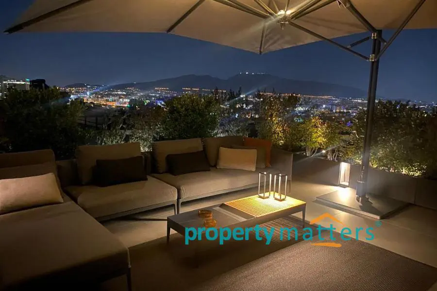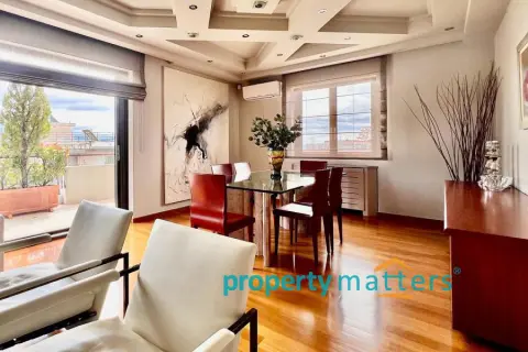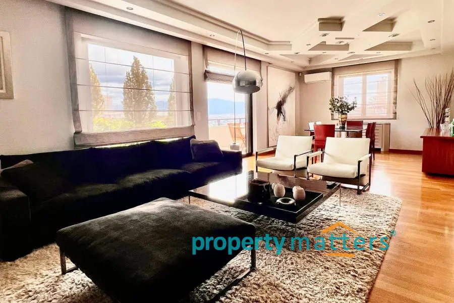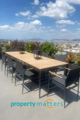 Stylish Apartment with Private Rooftop Studio & Panoramic Views | Marousi A bright 5th-floor apartment of 150 m² with surrounding balconies, south-facing orientation, and open city and mountain views. The residence features 3 bedrooms, 2 bathrooms, a spacious living and dining area, and a separate kitchen. The property includes a 20 m² fully renovated rooftop studio with an exclusive 100 m² terrace, BBQ area, and 360° panoramic views of Athens. Two underground parking spaces and a private storage room are included. Golden Visa eligible, currently rented, offering a 4.5% annual return, with the option to connect the apartment and rooftop studio internally for added flexibility.
