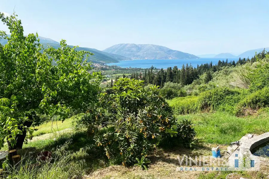 In a verdant location at the upper part of Grizata and a short distance from the beautiful and picturesque Sami, this exceptional plot of land is available for sale. The plot is even and buildable and measures 9,565 sq.m. It also can be immediately connected to utility networks. This privileged property includes a lush orchard with fruit trees, but also a natural source of drinking water. Another important feature is its amphitheater position, due to which it enjoys a unique view of the entire eastern coastline of Cephalonia and the canal between Kefalonia and Ithaca. The view of the endless blue sea is combined with the verdant plains of the Sami area and creates a unique landscape that is harmoniously completed by the traditional houses that emerge all around.