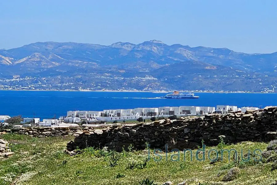 In a calm area. at the east part of the island, lies this land parcel, only a few minutes away from Logaras, Punda and Chryssi Akti (Golden Beach). Situated on a smooth slope with view towards the bay of Logaras, the western coast of Naxos island, the village of Marpissa, Piso Livadi, Logaras, the surrounding hills, and the monasteries of Agios Antonios and Agios Georgios. Its total surface is 6041 sq.m. permitting the construction of 241 m2 of net surface ground floor stone-built construction, or a total of 241 m2 as a conventional one At a very close distance lie the well protected sandy beach of Logaras, the famous Punda beach as well as the picturesque port of Piso Livadi with the all-day cafes and restaurants and the renowed Chrissi Akti. The access is very easy, it disposes water from drilling and the public electricity network is already connected to the adjoining parcel.