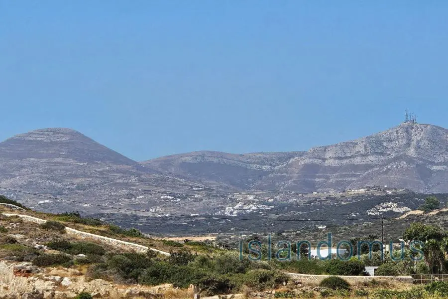 It is a fertile piece of land, including three adjoining parcels, with a total surface of 20273sq.m. Ideal for country houses with an open view on the hinterland, the surrounding area with the beautiful hills, the sea and the island of Naxos. It has the right to build in total 300sqm plus 60sqm semi covered area. It can be easily connected to the electricity. Within a short distance there are the beaches of Glyfades, Tsoukalia and Molos.