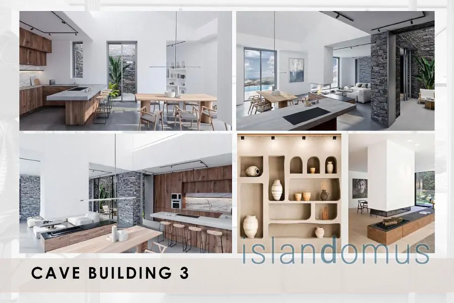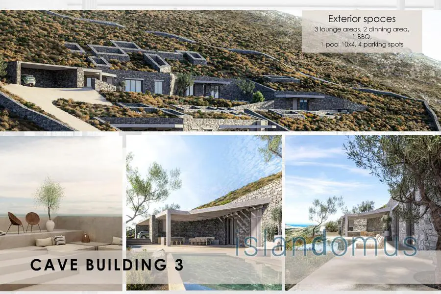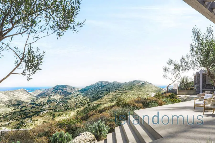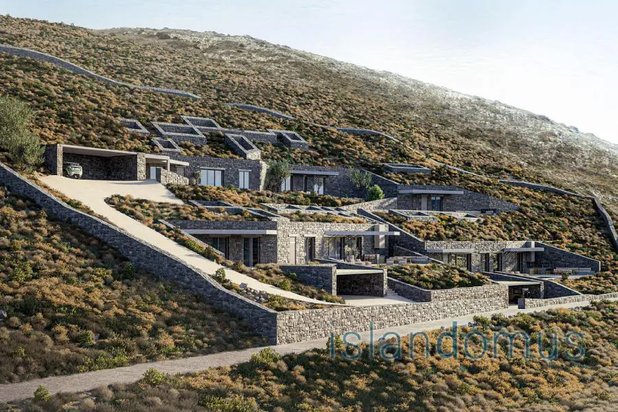 Like an eagle’s nest, this beautiful land parcel stand on the hills above the traditional and calm village of Kostos. Its surface is 6885sq.m. and it has a recent construction permit for three cave villas with a total area of 749sq.m. The houses are set in conversation with the unspoiled natural landscape, the spectacular dry-stone walls and the astonishing terraces of the island. The buildings have been designed as subterranean, offering spectacular unobstructed views of the mountains, the sea and the distant islands. The location is very privileged, close to Kostos and Lefkes and with easy access to Parikia and Naoussa. It can be an opportunity to slow down your rhythms, appreciate the natural beauty of the surrounding landscape and enjoy a way of life that nourishes your mind, body and soul.