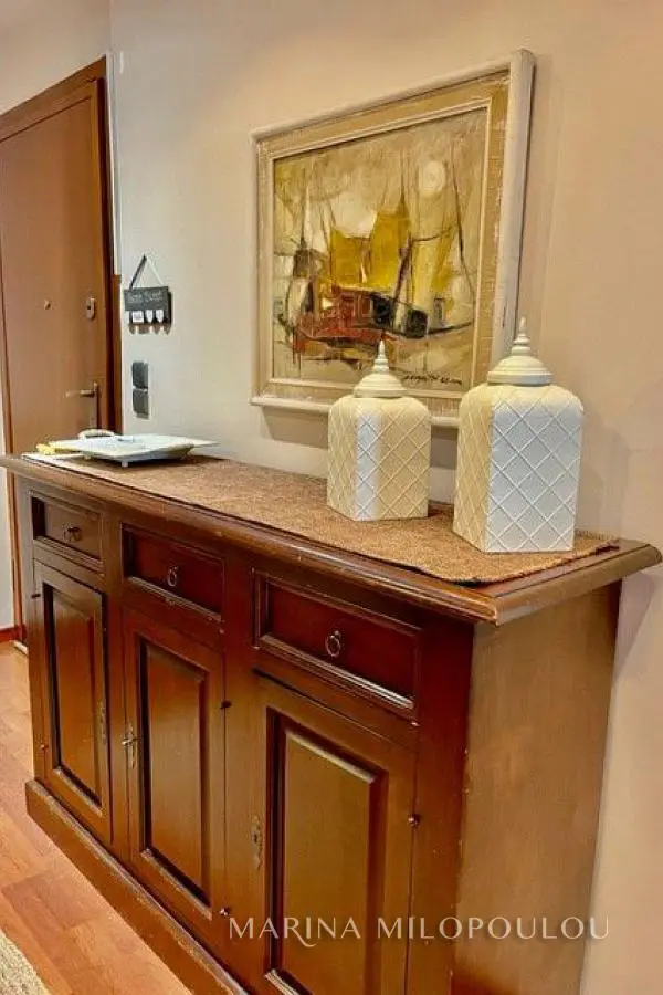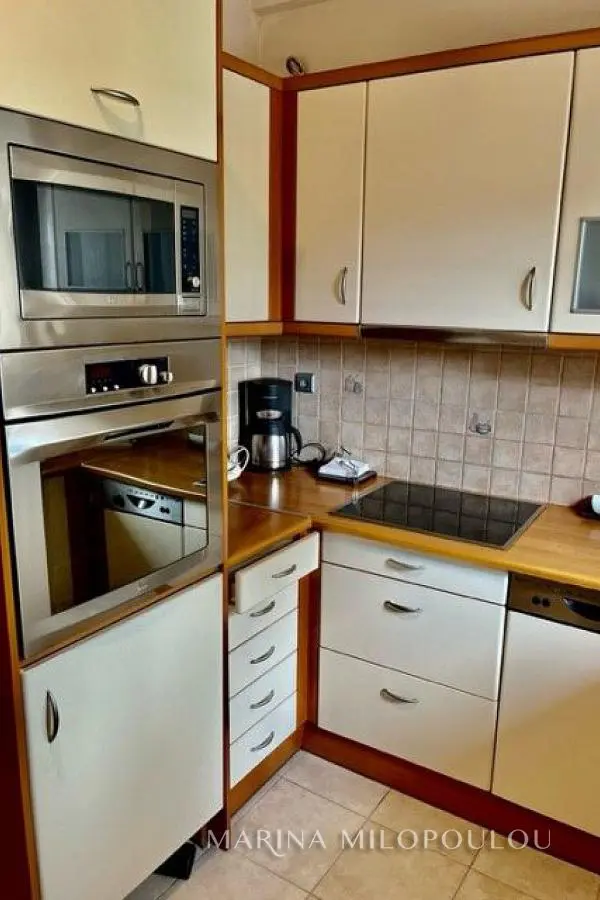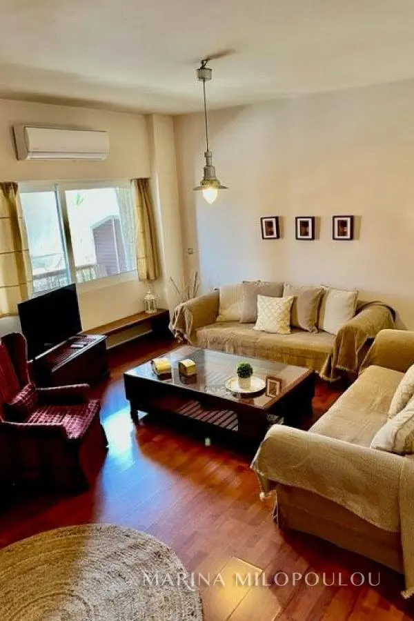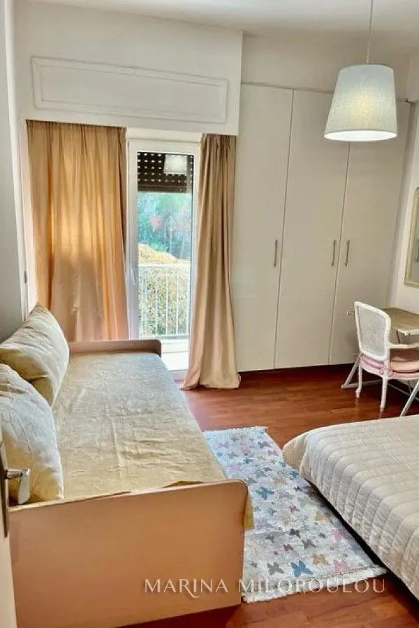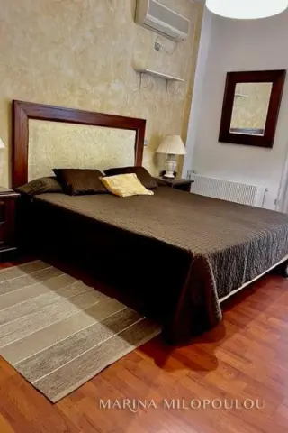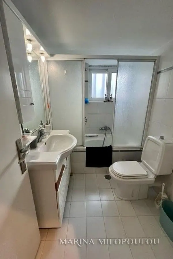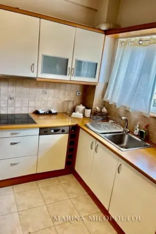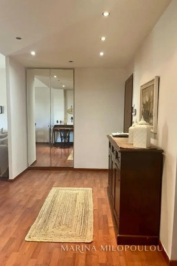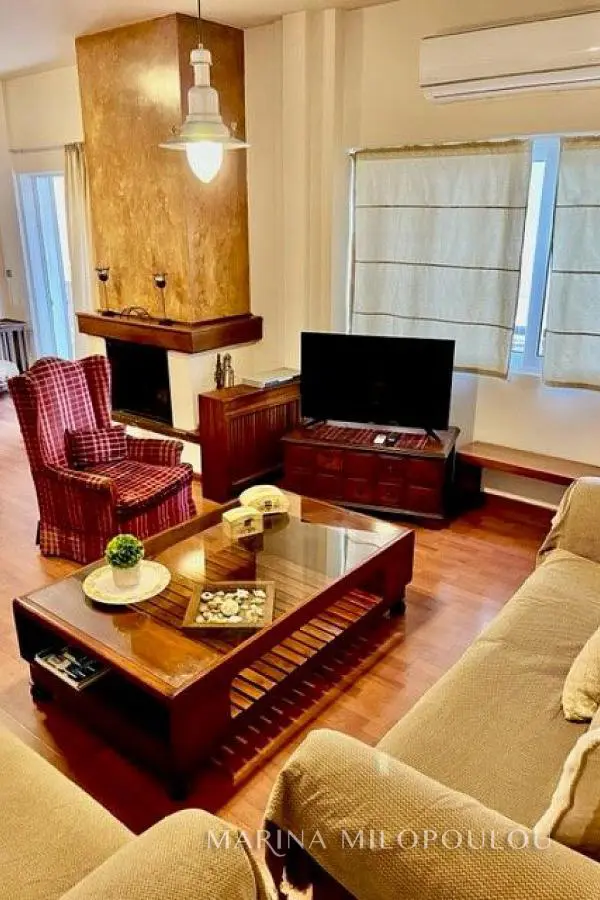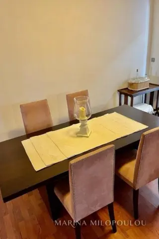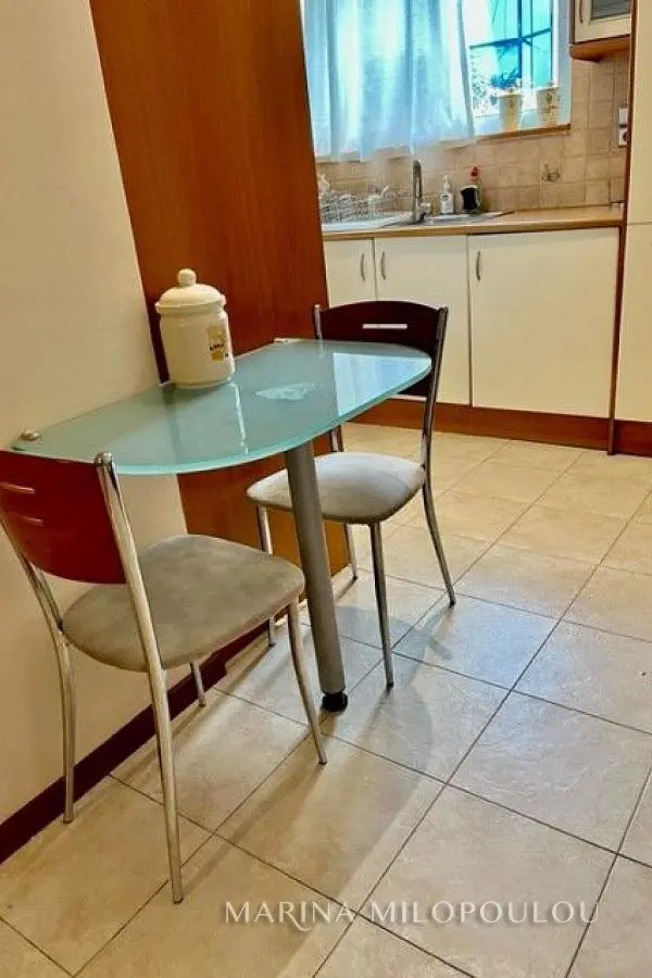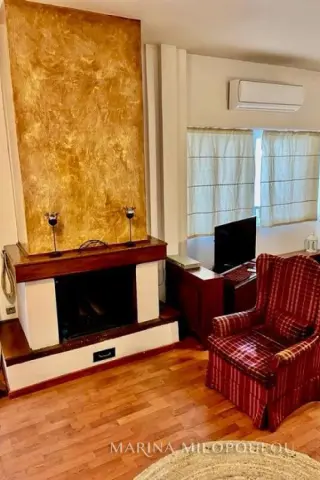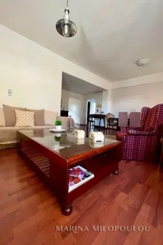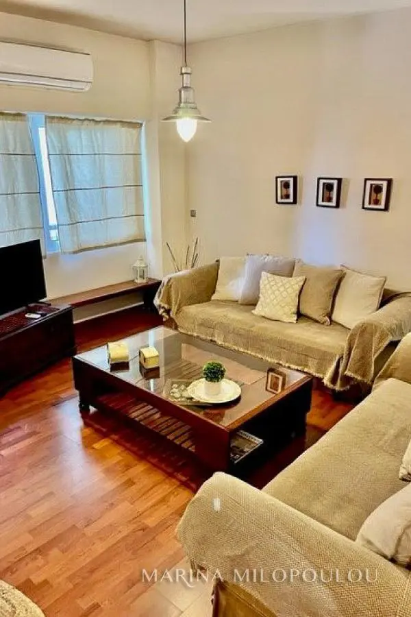 GLYFADA, close to the center, a 1st floor apartment of 100 sqm, fully furnished and equipped. It consists of a reception area with fireplace, dining room, kitchen, 2 bedrooms, 1 bathroom. The apartment has all electrical appliances (2 TVs), 2 A/Cs, natural gas heating, oak floor, security door. It is located on a main street of Glyfada (relatively noisy), very close to a local market, S/Ms, public transoprtation, 900 meters from the shopping area of Glyfada, 1.6 km meters from the 5* beach of the One and Only resort and 2.5 km from the free beach. Available from October 1st, 2025. Shared expenses €28. Small pet accepted.