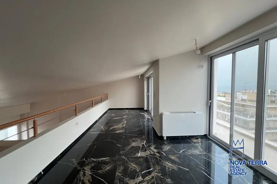 GLYFADA - KENTRO, Penthouse,, Rental, 140 sq.m, year built 2022, 3 rooms, 6th, View: Seaview, Various Characteristics: Balcony, Bath, Escalator, Fire Place, Kitchen, Living room, Penthouse, Store Room, Toilet, Heating: Air Conditioning, Autonomous Gas Heating, Autonomous Heating-central systm, Access road, Aluminium panels, Bright, Double-glazing, Facade, From Side to Side, Luxury, Minimal, Newly built, Residential area, Security Door, Solar Heating, In perfect condition: : : : Parking area: Garage, Energy class: A. property ID: 45142, www.nova-terra.gr