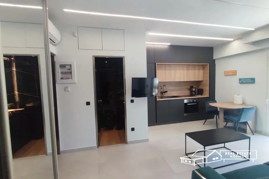 Varkiza, on the border with Vouliagmeni, on the 1st floor, a modern apartment of 35 sq.m. is offered in an excellent location, close to the sea and all the amenities of the area. The property has been fully renovated and is available furnished, ready to occupy. It consists of a living room with open plan kitchen, fully equipped with all electrical appliances, 1 bedroom and a bathroom with a separate shower area. It has air conditioning, aluminum frames with double glazing, screens & electric roller shutters, security door and a beautiful terrace. Ideal for a comfortable permanent residence or for use as a summer relaxation spot near the sea. Contact telephone: +30 6932 746491, website: www.merryland.com.gr, Email: [email protected], Id: 16422