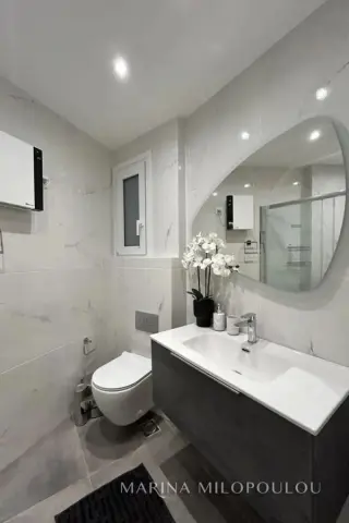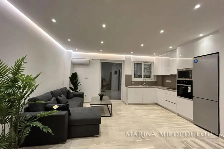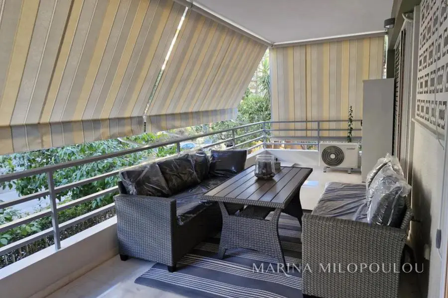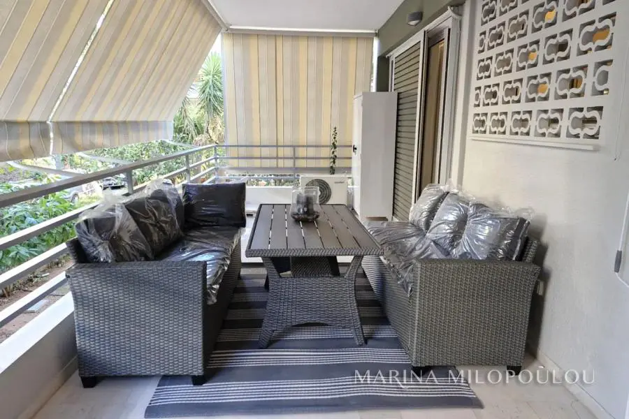VARKIZA, 250 meters from the sea and the market, fully renovated, furnished and equipped apartment, on the 1st floor, 47 sq m, with a terrace of 18 sq m. Single living room, kitchen, 1 bedroom and 1 bathroom. It is part of a 5-story building with a garden and has a beautiful view. The apartment features security door, new double glazed windows, screens, awnings, 2 A/Cs for cooling/heating, small electrical appliances and 2 TVs. Excellent location 2 minutes walk from the sea and the cafe restaurants of Varkiza, 8 minutes from the beach "Varkiza Resort", 2.5 km from Vouliagmeni and 18 km from the airport. Maintenance approx. 20€/month. Available from June 1st, 2025 for long-term lease.