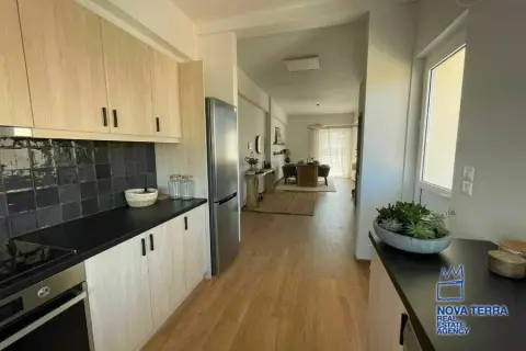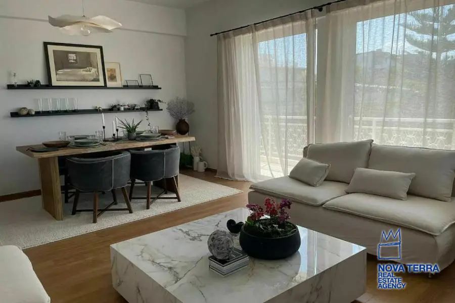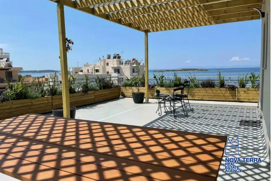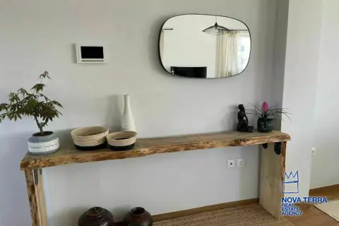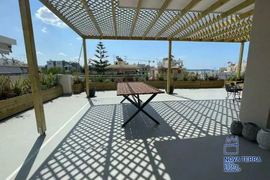Luxury apartment for rent in Voula Kato with stunning sea views. This 97 sq.m apartment renovated in 2022. It features 2 bedrooms, a balcony, 2 bathrooms, a fireplace, and is fully furnished. The kitchen and living room are spacious and the flooring is laminate. There is a privet terrace with a studio. Heating is provided by air conditioning. The apartment is located in a residential. It is in perfect condition and includes a parking area. Energy class: Β. Property ID: 48075. For more information, visit www.nova-terra.gr.