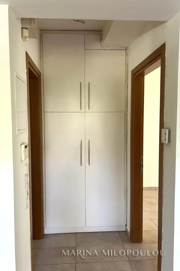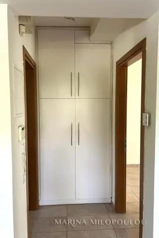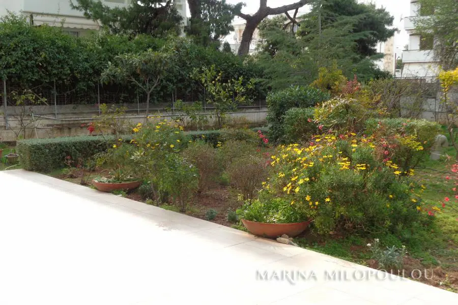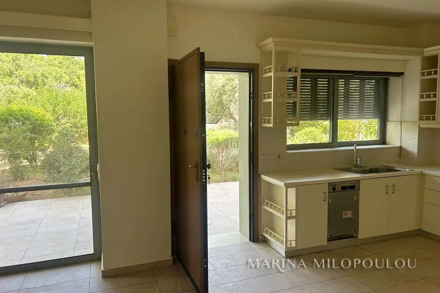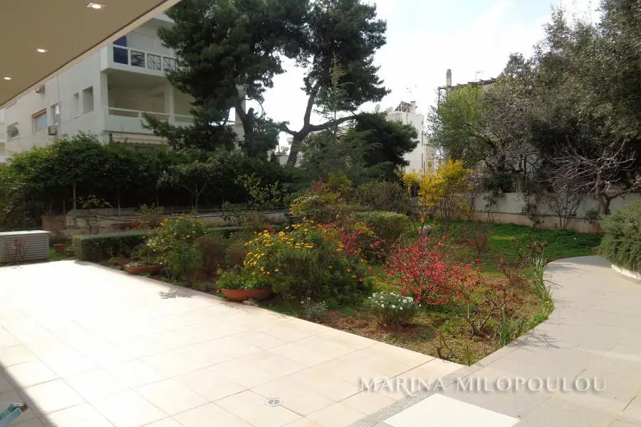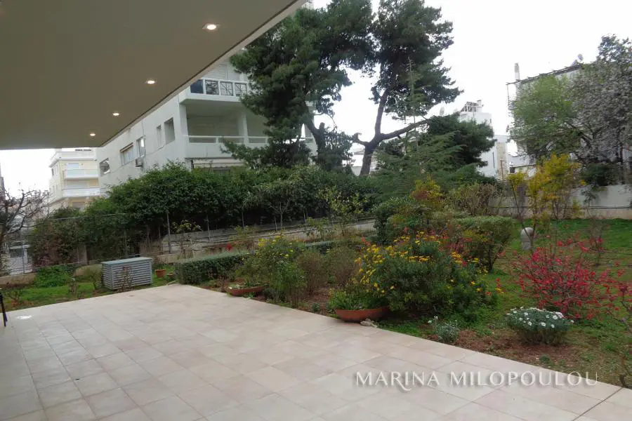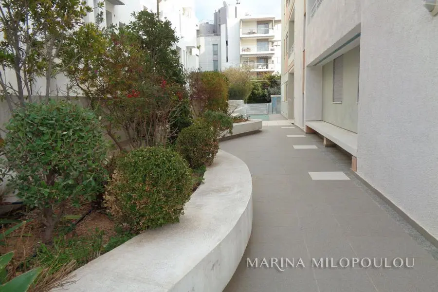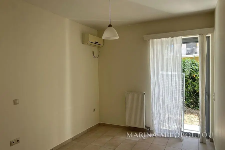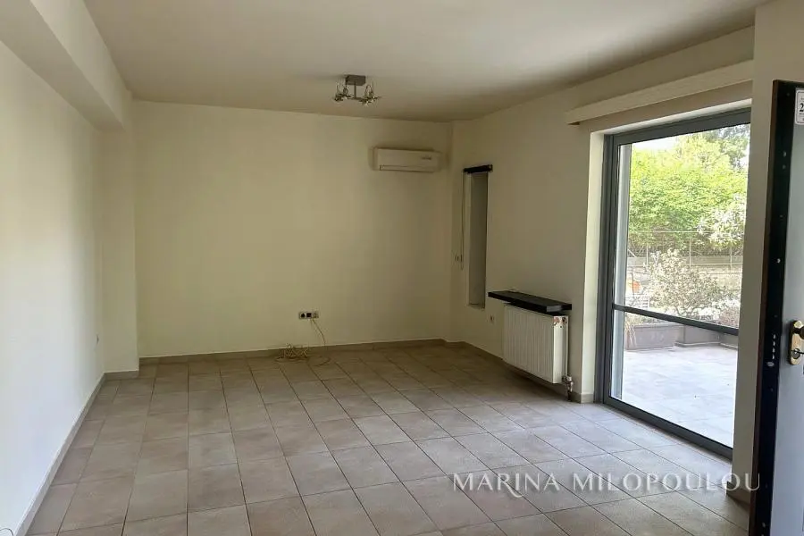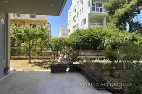 Voula - Center 65 sqm ground floor apartment with garden. Bright, sunny ath the back side of the building with view to the garden. Spacious living room opan plan kitchen,1 bedroom and one bathroom. It has alarm system, gas heating autonomy, electric shutters, 2 A/Cs. Low common expenses. Bright and sunny apartment, in a quiet location 5 minutes walk from the center of Voula, 1 km from a public sandy beach of the area, 2 km from the organized beaches of Voula.