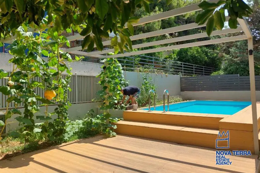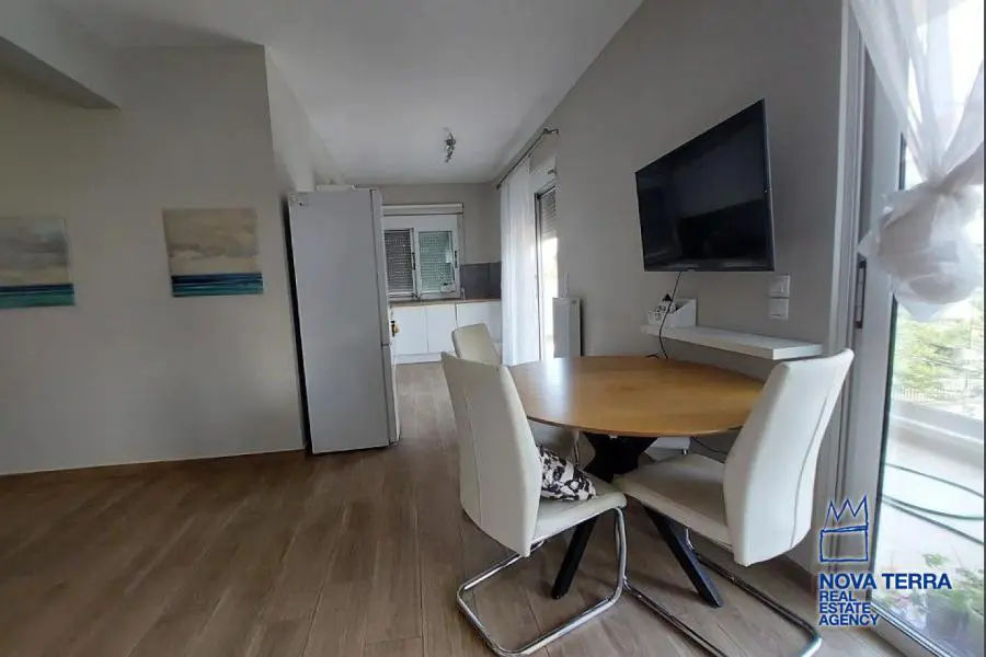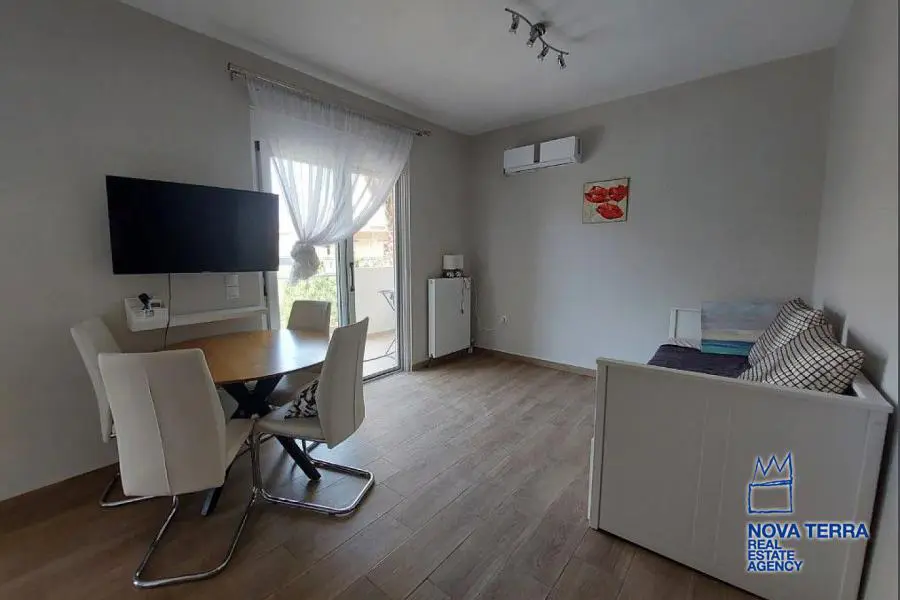 VOULA - DIKIGORIKA, Apartment,, Rental, 70 sq.m, year built 2018, 2 rooms, 1st, Various Characteristics: Balcony, Bath, Escalator, Furnished, Kitchen, Living room, Store Room, Swimming Pool, Flooring: Tile, Heating: Air Conditioning, Autonomous Gas Heating, Access road, Aluminium panels, Bright, Double-glazing, Facade, From Side to Side, Luxury, Newly built, Night charge, Painted, Residential area, Screens, Security Door, Solar Heating, In perfect condition: Parking area: Parking, Energy class: Β. property ID: 51956, www.nova-terra.gr