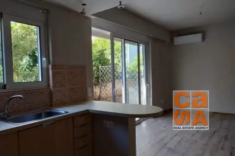 For sale in Glyfada-Kato: 53.5 sq.m apartment built in 2002. Features 1 room on the ground floor with air conditioning heating. Excellent condition, refurbished with a garden and near public transport. Includes tiled and wooden floors, security door. Property ID: 12650. Visit casarealestate.gr for more information.