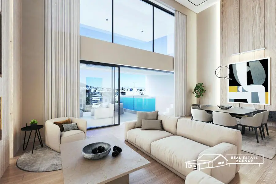 Glyfada, at the Golf Area, a luxurious, under construction, duplex apartment of 258 sqm is available for sale. It is situated on the 2nd and 3rd floor and it has a pool. On the 2nd floor, which is 149 sqm, it has a high-ceilinged living room with a fireplace and a terrace with a swimming pool, an open plan kitchen, 2 master bedrooms with their own bathroom and a guest toilet. On the 3rd floor, which is 109 square meters, there is a master bedroom, a walk in closet and a bathroom. The apartment will have independent, underfloor heating with natural gas, cooling system with VRV air conditioners, oak floors, alarm system, security door, aluminum windows with double glazing, 2 parking spaces and a storage. Delivery date at the beginning of 2025. For more info: +30 6944 772536 , website: www.merryland.com.gr, Email: [email protected], id: 15088