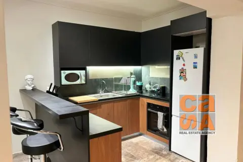 For sale in Glyfada: 70 sq.m apartment built in 1979, renovated in 2024. Features include air conditioning, dishwasher, microwave, washing machine, bath, elevator, furnished, and security door. Property ID: 15923. Visit casarealestate.gr for more information.