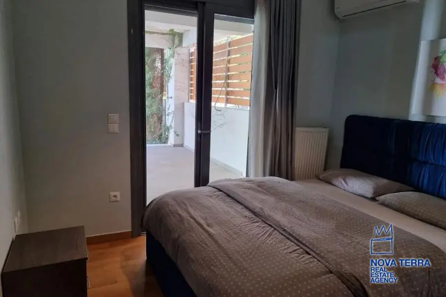 GLYFADA - GOLF, Apartment,, Sale, 55 sq.m, year built 2008, 1 rooms, Ground Floor, Various Characteristics: Bath, Furnished, Garden, Kitchen, Living room, Flooring: Wooden floor, Heating: Air Conditioning, Autonomous Gas Heating, Autonomous Heating-central systm, Access road, Aluminium panels, Bright, Double-glazing, Luxury, Painted, Residential area, Screens, Security Door, Solar Heating, In perfect condition: : Energy class: C. property ID: 48576, www.nova-terra.gr