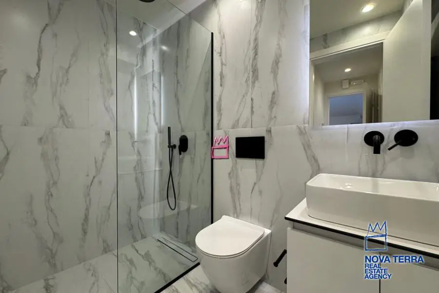 GLYFADA - EXONI, Apartment,, Sale, 81 sq.m, year built 2023, 2 rooms, Ground Floor, Various Characteristics: Balcony, Bath (2), Escalator, Garden, Kitchen, Living room, Refurbished, Toilet, Master Bedrooms: 2 Master Bedrooms, Flooring: Wooden floor, Heating: Air Conditioning, Floor heating, Heating pump, Access road, Aluminium panels, Bright, Double-glazing, Electric Roller Windows, Facade, From Side to Side, Luxury, Minimal, Newly built, Painted, pets allowed, Residential area, Screens, Security Alarm, Security Door, Solar Heating, Weekend Residence, In perfect condition: Pets allowed: Satellite dish: For investment: Parking area: Parking, Energy class: A. property ID: 49092, www.nova-terra.gr