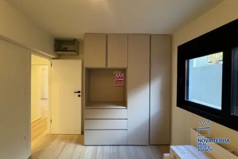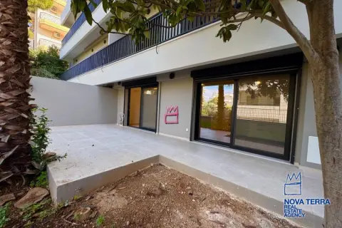 GLYFADA - EXONI, Apartment,, Sale, 62 sq.m, year built 2023, 2 rooms, Ground Floor, Various Characteristics: Balcony, Bath, Garden, Kitchen, Living room, Refurbished, Flooring: Wooden floor, Heating: Air Conditioning, Floor heating, Heating pump, Access road, Aluminium panels, Bright, Double-glazing, Electric Roller Windows, Facade, From Side to Side, Luxury, Minimal, Painted, pets allowed, Residential area, Screens, Security Door, Solar Heating, Weekend Residence, In perfect condition: Pets allowed: Satellite dish: For investment: Parking area: Parking, Energy class: A. property ID: 49091, www.nova-terra.gr