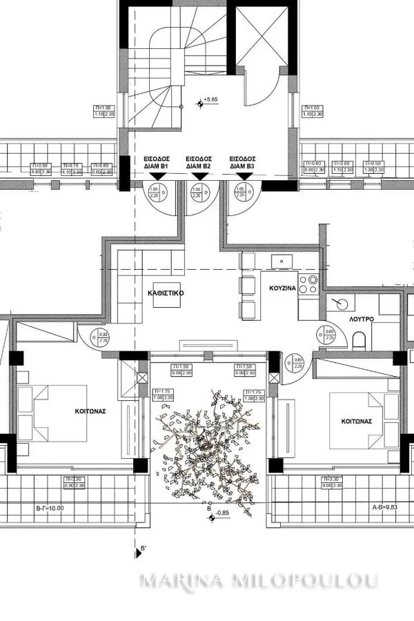 DAFNI - in a building under construction (permit stage), a 2nd floor apartment of 57 sq.m. Reception - dining area, kitchen, 2 bedrooms with veranda access and 1 bathroom. It is part of a modern 5-storey building with a piloti. It features an individual natural gas boiler, double glazing, basement storage room. At this stage, the buyer can make alterations and choose decorative/construction materials. Parking spaces for sale in the piloti (€30,000) and in the basement (€35,000). Zone price €1750. It is located at a distance of 170 meters from the local market of Vouliagmenis Ave, 280 m. from a small forest park, 350 meters from the Agios Ioannis Metro station, 2.2 km from the Acropolis Museum and Athens Metro Mall, 3 km from Syntagma Square, 12 km from the port of Piraeus and 31 km from the intern. airport. Estimated delivery 07/2027.