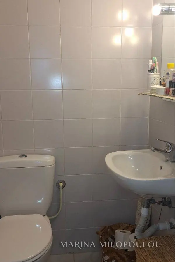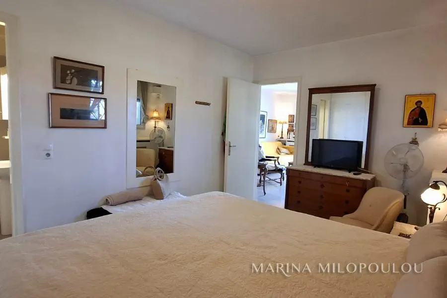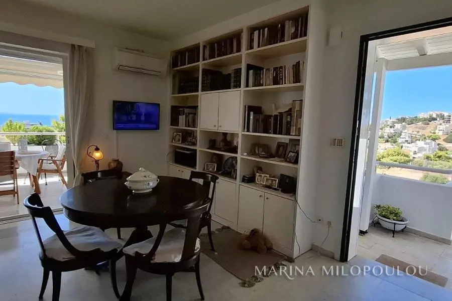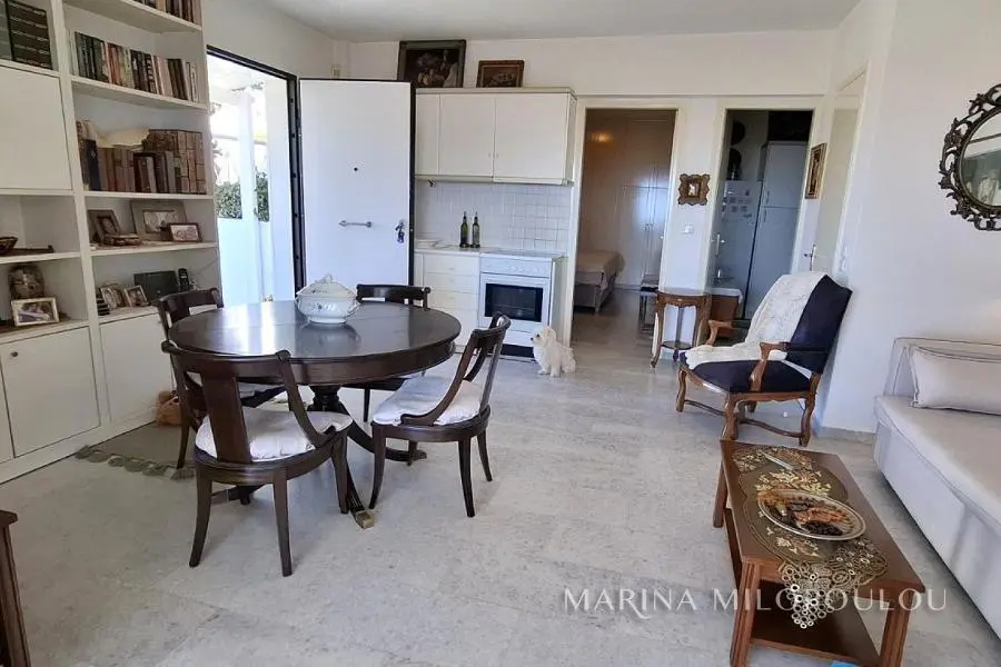 ANAVYSSOS - Agios Nikolaos, elevated 1st floor apartment, 58 sq m with panoramic sea view. Reception area, open kitchen, 1 master bedroom (with possibility of 2nd), 1 bathroom, 1 wc, large terrace. It features autonomous oil heating, security door, double glazing, screens, awnings, additional safety railings, marble floors, secyrity alarm, closed parking space, 6 sq m storage room. It is part of a complex of 16 residences, within an plot of 1420 sqm. Monthly maintenance expenses 30 € aprox. Zone price 1850 €. It is located on a hill with panoramic views of the sea, in a very quiet country environment, in a beautiful area of the Athenian Riviera with rising demand and residential development. Distance 750 m from the beautiful sandy and organized beach of Agios Nikolaos, 3.8 km from Palaia Fokaia, 4.8 km from Saronida, 17 km from the new large passenger port of Lavrio, 31 km from the International Airport.