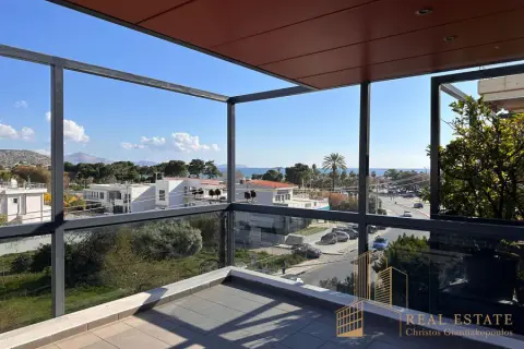 VARKIZA FOR SALE LUXURY APARTMENT-MAISONETTE 125 SQM 2ND-3RD FLOOR AND EXCLUSIVE USE OF TERRACE WITH UNLIMITED SEA VIEW. IN A MODERN BUILDING OF MINIMAL ARCHITECTURE WITH EAST-SOUTH ORIENTATION, CLOSE TO THE MARKET AND THE BEACH OF VARKIZA.. THE 3RD FLOOR CONSISTS OF A SPACIOUS RECEPTION AREA WITH SEA VIEW, FIREPLACE, LARGE VERANDA, OPEN - PLAN KITCHEN, 2 BEDROOMS AND BATHROOM. THE 2ND FLOOR CONSISTS OF A LARGE MASTER BEDROOM WITH SEA VIEW AND BATHROOM. OAK FLOORS THROUGHOUT THE HOUSE, COOLING - HEATING, SOLAR SYSTEM, ALARM, SECURITY DOORS, EXCLUSIVE USE OF TERRACE, UNDERGROUND PARKING AND STORAGE.