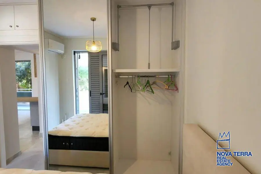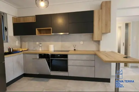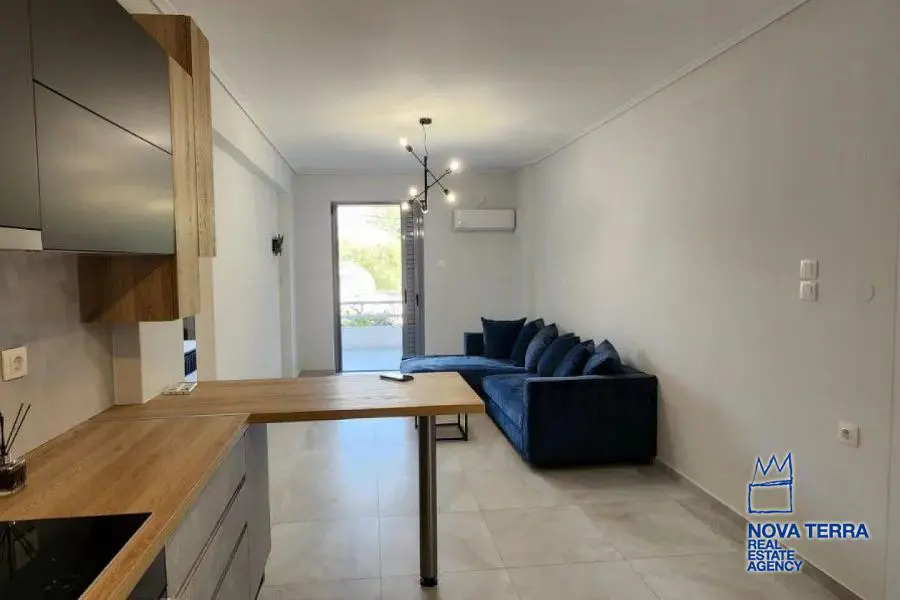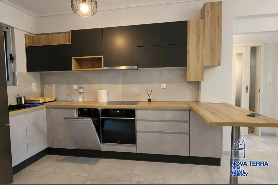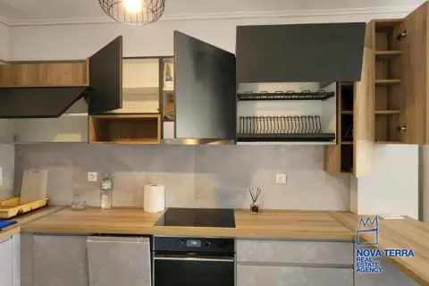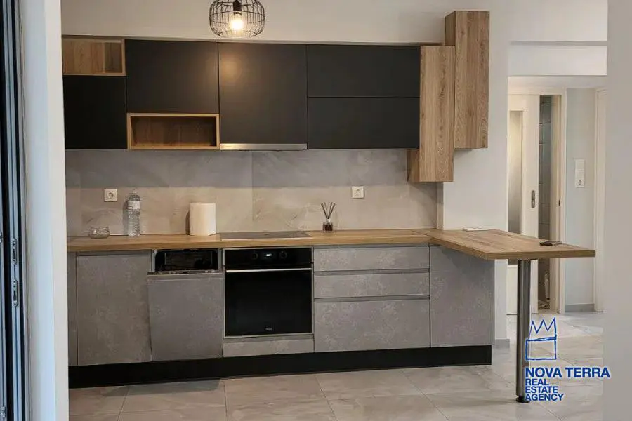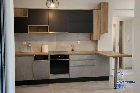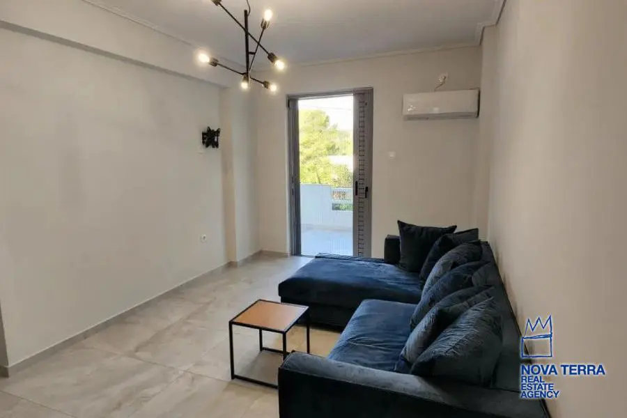 VARKIZA - KAMINI, Apartment,, Sale, 60 sq.m, year built 1985, renovated in 2021, 2 rooms, 1st, Various Characteristics: Balcony, Bath, Escalator, Furnished, Kitchen, Living room, Refurbished, Store Room, Flooring: Murble, Heating: Air Conditioning, Access road, Aluminium panels, Bright, Double-glazing, Facade, From Side to Side, Luxury, Minimal, Night charge, Painted, Residential area, Screens, Security Door, Solar Heating, In perfect condition: Energy class: Β. property ID: 51856, www.nova-terra.gr