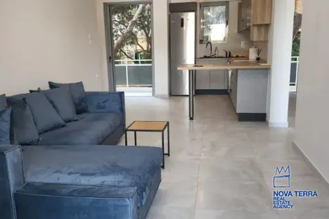 VARKIZA - VARKIZA, Apartment,, Sale, 63 sq.m, year built 1997, 1 rooms, Ground Floor, Various Characteristics: Bath, Furnished, Garden, Kitchen, Living room, Refurbished, Flooring: Wooden floor, Heating: Air Conditioning, Αutonomous oil heating, Access road, Aluminium panels, Double-glazing, Facade, From Side to Side, Luxury, Minimal, Painted, Residential area, Security Alarm, Security Door, Solar Heating, Tents, In perfect condition: : : Energy class: D. property ID: 49190, www.nova-terra.gr