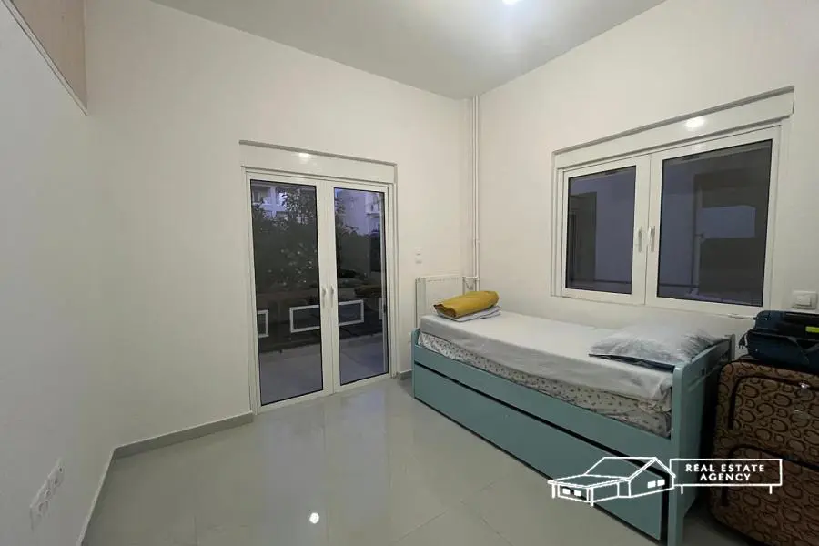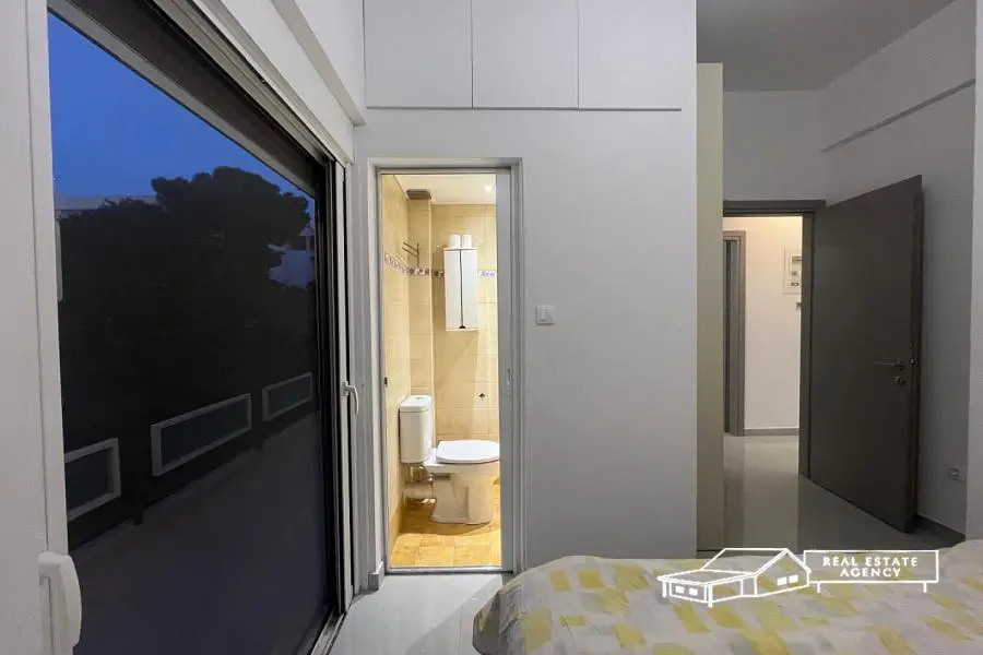 Voula, just 500 meters from the beach and the tram stop, a fully renovated (2025) apartment of 76 sq m, 1st floor, with garden view, is for sale. It consists of a bright and large living room with open-plan kitchen, 2 bedrooms, bathroom and wc. It has aluminum frames with double glazing, oil central heating, air conditioning, tiled floors, security door, parking space and a 15 sq m space in the garden suitable for storage or other auxiliary use. The location on the map is indicative. Contact phone: +30 6932 746491, website: www.merryland.com.gr, Email: [email protected], Id: 16402
