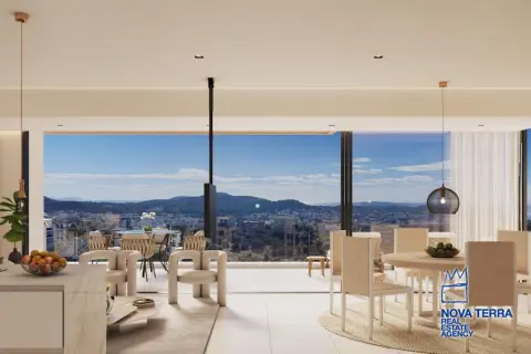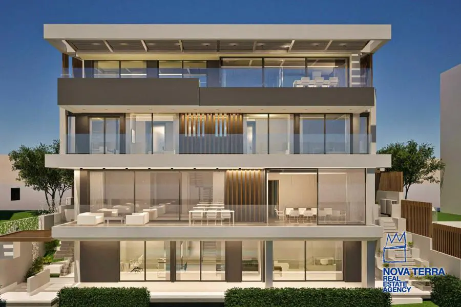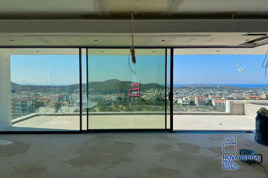 VOULA - EFOPLISTIKA, Penthouse, Sale, construction 2025. Newly built Penthouse 155sq.m and 60 sq.m. balconies with swimming pool and with unobstructed views that take your breath away, Sea, Green and Mountain. With its own entrance where the elevator enters the apartment. It has a spacious bright living room area with open kitchen, fireplace, 3 bedrooms (1 master), 2 bathrooms, 1 w/c and a laundry room. Underfloor heating, heat pump and wooden floors. Storage room., Luxurious, Security door, Asphalt access, Frontage, Screens, Alarm, Bright, Excellent condition: Satellite dish: Investment: Parking: Garage, Energy class: A. property code: 51834, www.nova-terra.gr