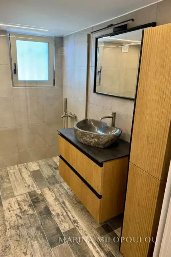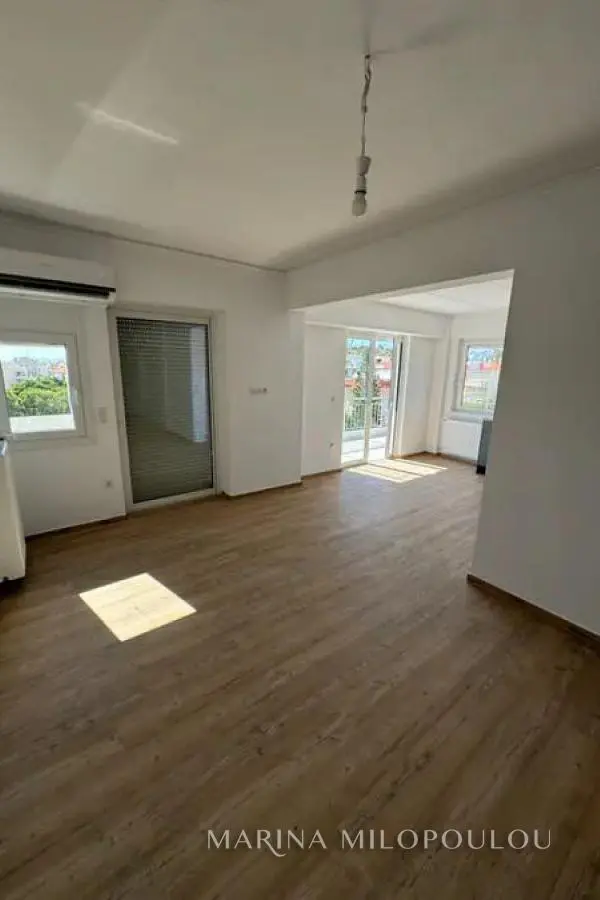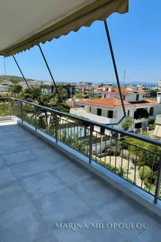 VOULA-Kalymniotika, 2nd floor apartment, completely renovated, 70 sq.m., southwest orientation with distant sea view. Single reception-dining room, open kitchen with electrical appliances (except fridge), 2 bedrooms, 1 bathroom and large veranda with sea view It features a security door, autonomous oil heating, new radiators, 3 A/Cs, solar water heater, thermo-switchable exterior frames with energy-saving glass, screens, new interior frames with magnetic locks, hidden led lighting, false ceilings, new pvc floor, pre-installation for a heat pump, security alarm, storage room, elevator. Renovation has been done in all the electrical system, in the central panel, hydraulic piping. Av.maintenance expenses 35€. It is part of a 3-storey building (with piloti) with totally 5 apartments, in a quiet street, 100 meters from Evelpidon Ave, 400m from the local market, 1.5km from the center of Voula and from the beach of the small Kavouri, 19km from Athens airport.