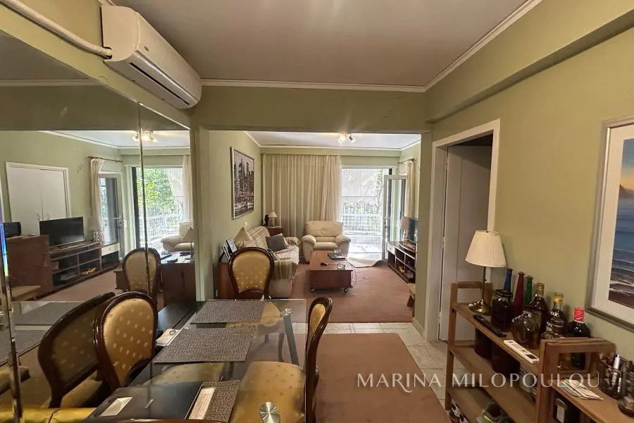 VOULIAGMENI - Center, Elevated Ground Floor apartment 53 sq m, side view, with a 10 sq m veranda. Living room, separate kitchen, 1 bedroom and 1 bathroom. It features double glazing, security door, cooling / heating with air conditioning, nets and awnings. Convenient parking is available in the municipal lot located directly in front of the property. An exceptional location opposite the Vouliagmeni Beach and a park, just a short walk from the local market, cafés - restaurants. A distinguished and enduring investment opportunity in one of the most sought-after and prestigious destinations along the Athenian Riviera. Zone price 4100 €. Maintenance approx. 25€ / month.. Distance 200 meters from the entrance of Vouliagmeni organized Beach, 300 meters from the center, 850 meters from Vouliagmeni Lake, 950 m from Astir Beach, 1.5 km from Four Season Astir Hotel and 21 km from the airport.