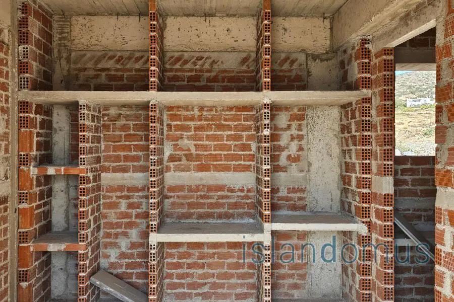 An apartment complex of 10 apartments, 612sq, m. ( ground floor 294sq.m. – first floor 233sq.m – basement with auxiliary spaces85 sq.m.) in a land plot of 1139sq.m. is for sale. It is also given from the owner in a basis of a land-for-apartment exchange system, with a percentage of 45%. Very close to the center of Dryos with its well-organized market, at a location that offers peace and privacy. The view is very pleasant towards the sea, the surrounding hills and the hinterland. Passing through village's narrow alleys, you reach the homonymous beach where you can swim in the crystal-clear waters and enjoy local food at the small taverns. The huge sandy beach of Chryssi Akti is minutes away.