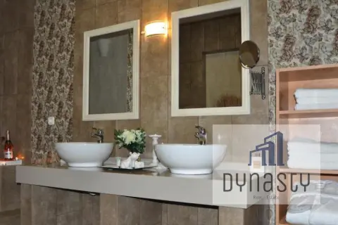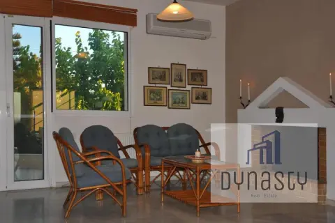 The property is located on a beautiful plot of 950 sq.m., in a fairly privileged (semi-central) location offering tranquility. It is just 5 minutes by car from the sea, approximately 2 km from the commercial and tourist shops in the center of the peninsula, and 20 km from the airport. Nearby, you will find several traditional villages and activity centers such as the Aquasplash park. The property consists of two main units: a 246 sq.m. maisonette and a semi-finished ground floor space of 150 sq.m., providing abundant space and potential. The maisonette is spread over two levels: - **2nd Floor:** It includes a spacious living room with a fireplace, providing a warm and inviting space, a guest room, and a WC, ideal for visitors. - **3rd Floor:** It includes three bedrooms, two bathrooms, and a small office space, which is highly functional for work or personal use. The maisonette is carefully designed to combine comfort and aesthetics, with attention to detail in the interior spaces. The fireplace and open living areas provide both comfort and atmosphere. In the garden, there is a gazebo with a wood oven, barbecue, and a decorative pond. **Additional Features:** The property also comes with an additional 750 sq.m. plot next to it, adding further value and potential for future development or the creation of outdoor spaces such as a garden or pool. **Sale Price: €800,000** For more information or to visit the property in person, contact us! Property code: 128, dynastyrealestate.gr