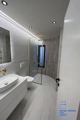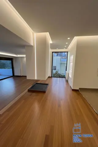 . property ID: 48Glyfada (North), 2nd floor apartment of 182 sq.m., open-plan living room, dining room with hanging fireplace, hidden lighting, spacious kitchen, 3 master bedrooms with en-suite bathrooms, 3 bathrooms, WC, laundry room, wrap around verandas, fully and luxuriously refurbished, communal landscaped garden with gathering area, bbq, power supply and built in outdoor seating.729, www.nova-terra.gr