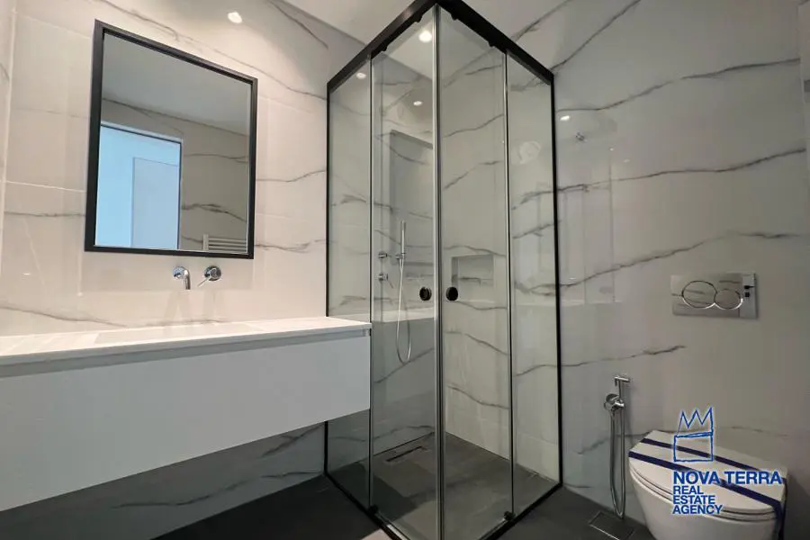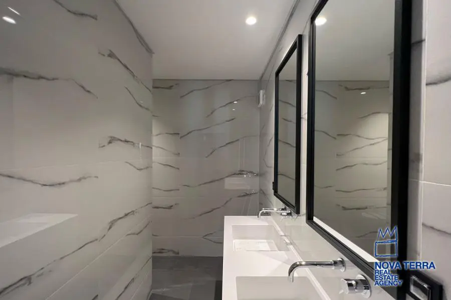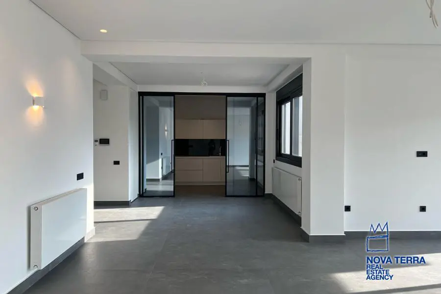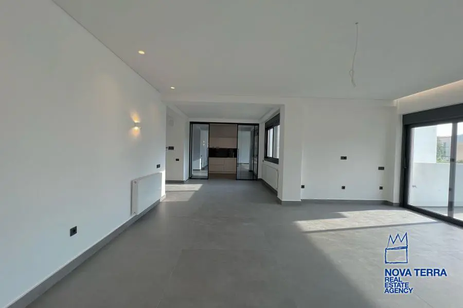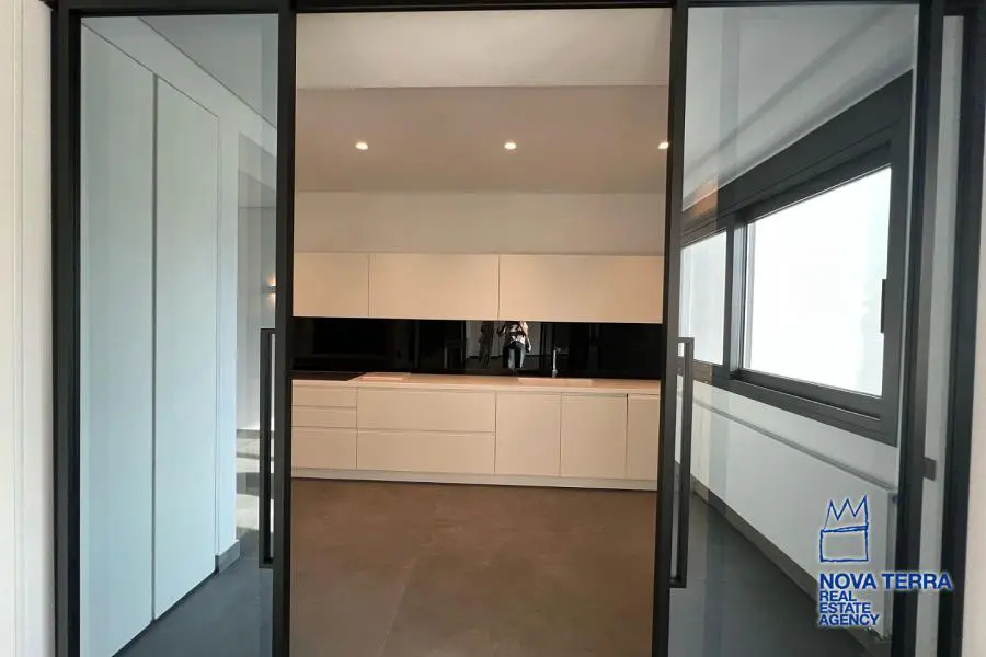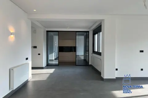 VOULA - PANORAMA, Single Floor Apartment,, Sale, 154 sq.m, year built 2022, 3 rooms, 1st, Various Characteristics: Balcony, Bath (3), Escalator, Kitchen, Living room, Store Room, Toilet, Master Bedrooms: 3 Master Bedrooms, Flooring: Slate, Wooden floor, Heating: Autonomous Heating (auto-system), Access road, Bright, Double-glazing, Electric Roller Windows, Facade, From Side to Side, Loading dock, Luxury, Maid Room, Minimal, Newly built, Painted, Screens, Security Alarm, Security Door, Solar Heating, In perfect condition: : : Parking area: Garage, Energy class: A. property ID: 48123, www.nova-terra.gr