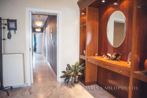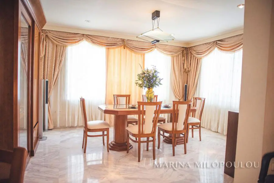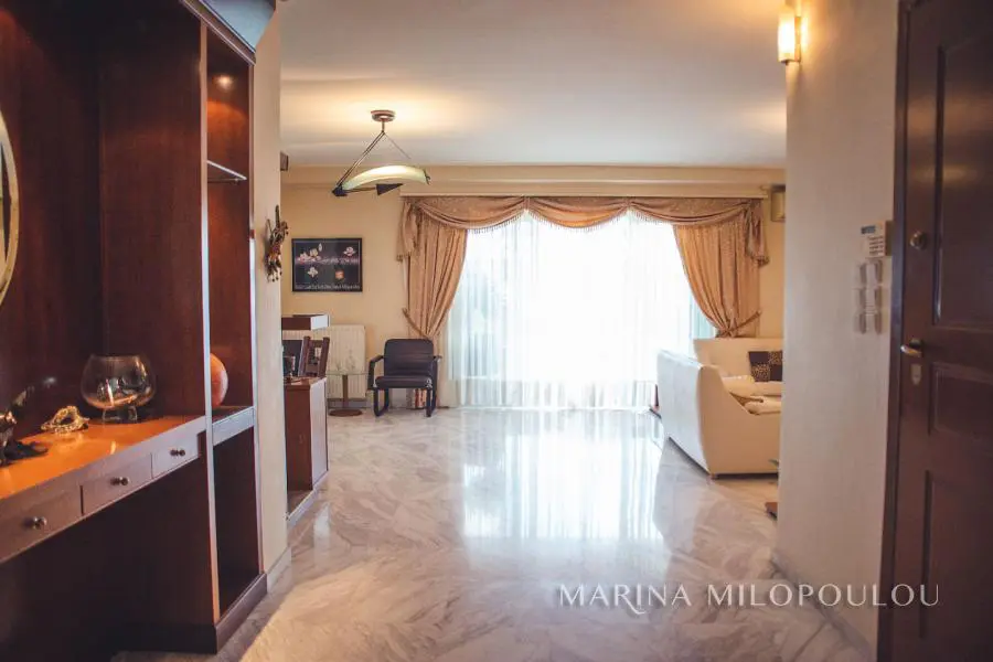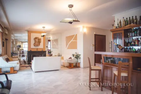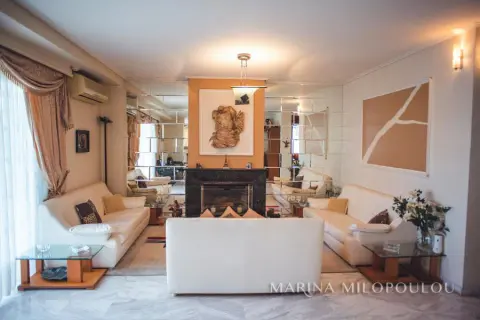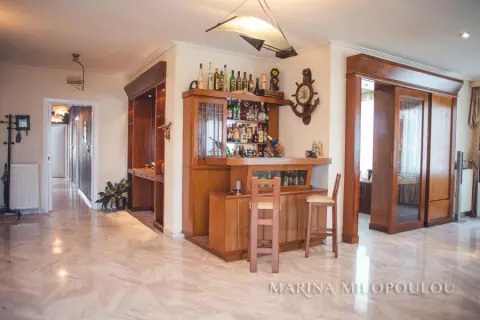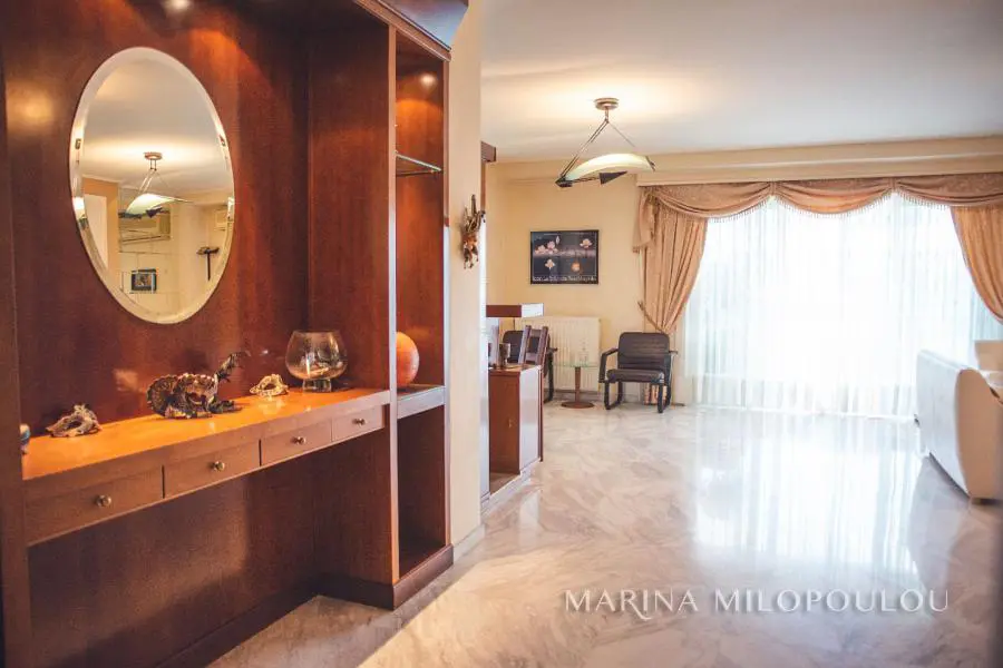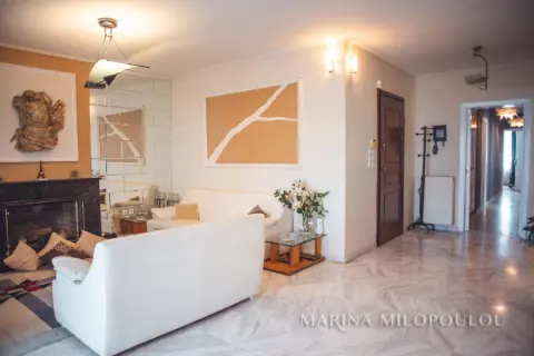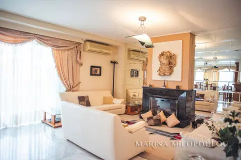 VOULA, 183 sq.m. apartment, on the1st floor, luxury construction. It consists of a reception area with fireplace, dining room, separate kitchen with its own living room, 3 bedrooms (1 master),1 additional bathroom and possibility for a 4th bedroom. It has marble floors in the main areas and oak floors in the bedrooms, independent oil heating, fireplace, A/Cs, many closets, double glazing, security door, alarm, underground parking and storage space. It is part of a neat 4-storey building, with 5 apartments, within a plot of 730 m2, with beautiful surroundings. Zone price €2800. It is located very close to a local market, at a distance of 1.2 km from Voula's organized beach and the Tram terminal, 1 km from the shopping area of Glyfada, 2.3 km from the center of Voula, 5km from Ellinikon Metropolitan Park, 8 km from the Four Season Astir Hotel and 22 km from the airport.
