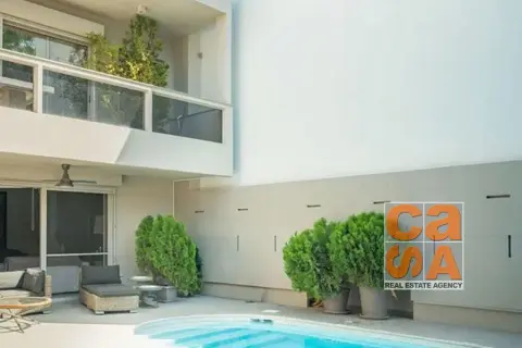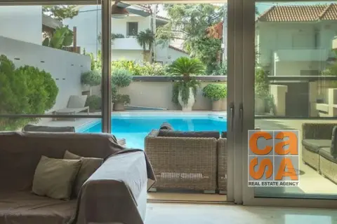 Detached house for rent in Voula - Pigadakia, featuring 350 sq.m of living space. Built in 1995 and renovated in 2016, this property offers 3 rooms on the ground floor and 1st floor. Heating options include air conditioning, fire place, heating pumps, and independent heating. The house comes with inbuilt electrical appliances and has been refurbished to a high standard (Condition: B). Additional features include an elevator, garden, intercom, private swimming pool, solar heating, synthetic window frames, security alarm, and security door. Property ID: 17221. Visit casarealestate.gr for more information.