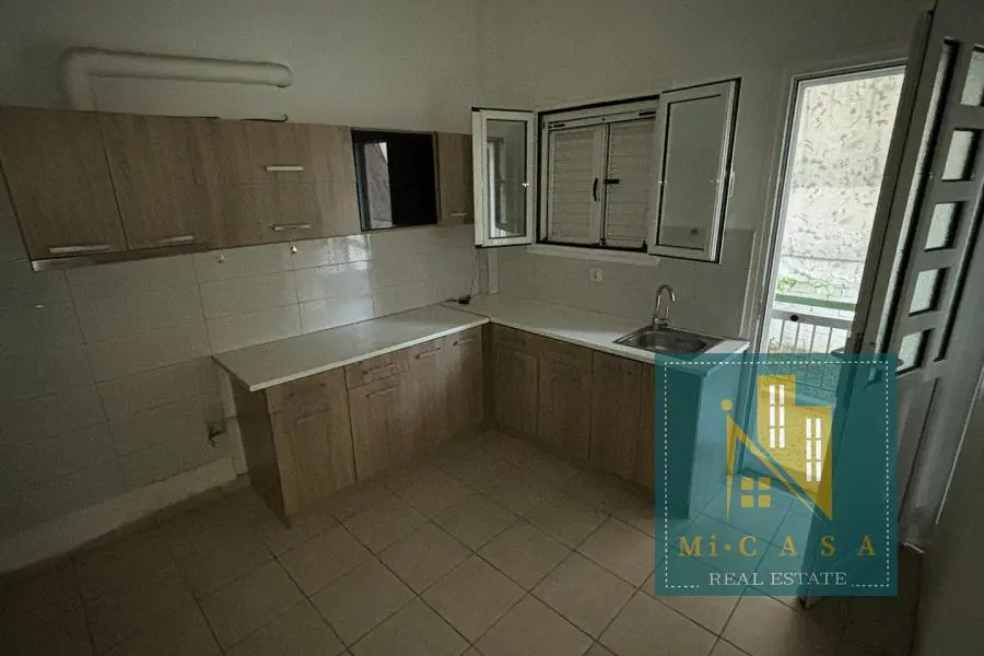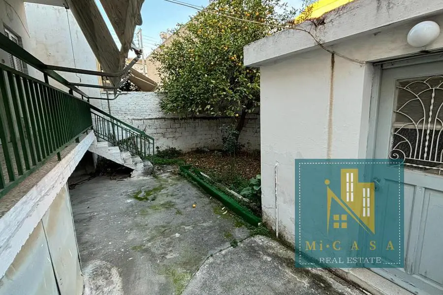 For sale in Egaleo: Renovated house with 2 rooms, 81 sq.m on a 174 sq.m plot. Built in 1967, renovated in 2015. Ground floor with aluminum window frames. Energy class G, suitable for investment use. Bright with bathroom, garden, and veranda. Property ID: 1329. Dual-aspect, frontal position with asphalt access. Available now.