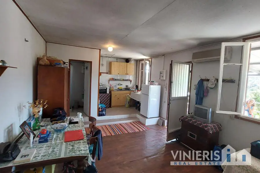 In the traditional village of Perata, specifically at the foot of the hill with the imposingly beautiful Castle of Ag. Georgiou, and just a few minutes from the airport, the town of Argostoli and the enchanting beaches of the area, a traditional house of 30 sq.m. on a corner plot with a total area of 162 sq.m., is available for sale. Built in a strategic amphitheater position, the house enjoys the green view of Livathos with a large covered terrace and a verdant garden adorning the property. Internally, the residence is designed in the form of a studio, a single kitchen-dining room-bedroom and a small bathroom. Due to its strategic location, this property is an ideal investment option for the owner.
