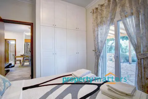 Located on the hillside overlooking San Stefano, the estate is a charming villa boasting picturesque landscaped gardens, a stunning private pool area, and mesmerizing sea views stretching towards the South of Corfu and the Albanian coastline. Situated on the sought-after North East coast of Corfu, the villa offers a serene haven where guests can unwind and luxuriate in comfort. Accommodating up to 10 guests, the villa features spacious and airy interiors thoughtfully designed for relaxation. The accommodation comprises 8 bedrooms, each with its own ensuite bathroom, providing utmost privacy and convenience. An elegant reception room welcomes guests, while a generously sized and well-equipped kitchen/dining room caters to culinary needs and gatherings. Outside, the villa boasts a plethora of amenities designed to enhance the outdoor living experience. The inviting pool area is surrounded by lush gardens, creating a tranquil oasis for sunbathing and refreshing dips. Two covered areas provide ample space for al fresco dining and lounging, allowing guests to savor meals and moments in the open air. Additionally, a large terrace spans the entire length of the villa, offering breathtaking panoramic views of the surrounding landscape and coastline. Convenience is paramount at the villa, with ample parking available and gated access ensuring security and peace of mind for guests throughout their stay. Whether lounging by the pool, dining under the stars, or simply soaking in the stunning vistas, the villa provides a delightful retreat for those seeking relaxation and rejuvenation amidst the natural beauty of Corfu’s North East coast. San Stephanos (Agios Stefanos) which is approximately 12 minutes walk or a few minutes drive away has a delightful selection of excellent tavernas, 2 popular bars, a couple of small supermarkets and several boat hire companies. The beaches and Tavernas of Avlaki and Kerasia are close by and Kassiopi the main local Town is about 10 minutes drive. The charming village of Kalami made famous by the Durrell family is just a short drive or boat ride away together with the beaches and tavernas of Kaloura, Agni and Kaminaki. Our latest secret is Glyfa and especially their Garlic Rice and Prawns! Corfu Town and the airport are about 45 Kms away. Hiring taxis is easy but hiring a car enables you to explore the island. There are wonderful places to visit including the ancient village of Old Perithia where the islanders would hide from maurauding pirates or the tiny monastery on the summit of Mount Pantokrator. You can hire a small boat and explore the coastline or just simply drop anchor in one of the many small coves and enjoy swimming or snorkelling in the crystal clear waters. The majority of beachside tavernas have jetties where you can moor for lunch. There are also several water taxis that can take you to lunch or for a romantic dinner. If you have your Power Boat Licence you can hire a more powerful boat and take a trip to Corfu Town or further afield or even to the mainland of Greece. There is also a small sailing school at Avlaki where you can learn to sail or hire a wind surfer or paddle board. The North East Coast is renowned for its scenery and there are many wonderful coastal or hillside paths where you can enjoy the views and wonderful plants and fauna.