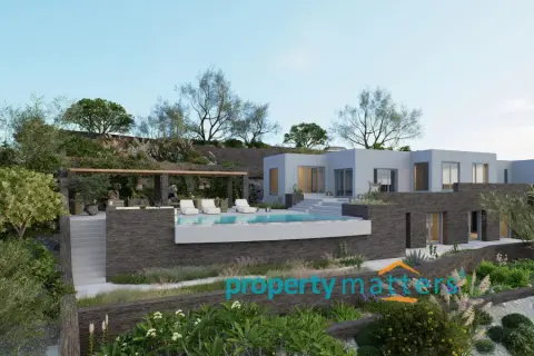 For sale: an ultra-luxurious villa under construction in the sought-after area of Otzias, Kea, just steps away from the sea. This exceptional residence, scheduled for completion by the end of 2025, offers a total living area of 218 sq.m. and is set on a private plot of 1,500 sq.m., ensuring complete privacy and uninterrupted views of the Aegean Sea. Spread over two levels, the villa has been designed with an emphasis on functionality, elegance, and high-end aesthetics. It features four master bedrooms, each with its own en-suite bathroom. The rooms are spacious and stand out for their comfort and panoramic views of the sea. The property also includes a modern, fully equipped independent kitchen, a bright living room with a fireplace, a laundry room, and additional storage spaces. All areas are filled with natural light and open onto expansive verandas with stunning sea views. High-quality window frames with integrated insect screens further enhance comfort and energy efficiency. The outdoor area impresses with a private swimming pool, multiple verandas perfect for relaxation and entertaining, and five open parking spaces. The villa is equipped with air conditioning, satellite TV, energy-efficient aluminum or composite window frames, and has been classified as A+ in energy performance, ensuring low energy consumption and modern sustainability. Located in Otzias—one of Kea’s most popular and up-and-coming coastal areas—the property is ideal as a private residence, a luxurious holiday retreat, or a high-return investment. It combines comfort, elegance, and breath-taking views of both nature and the sea, offering an exceptional living experience on the island. A private path with a metal staircase will also be constructed, providing direct access to the sea. A distinctive feature of the property is that it is supported by a private water well.