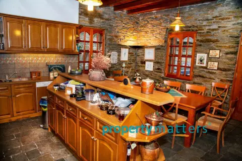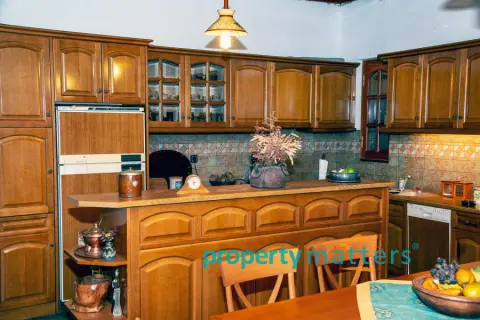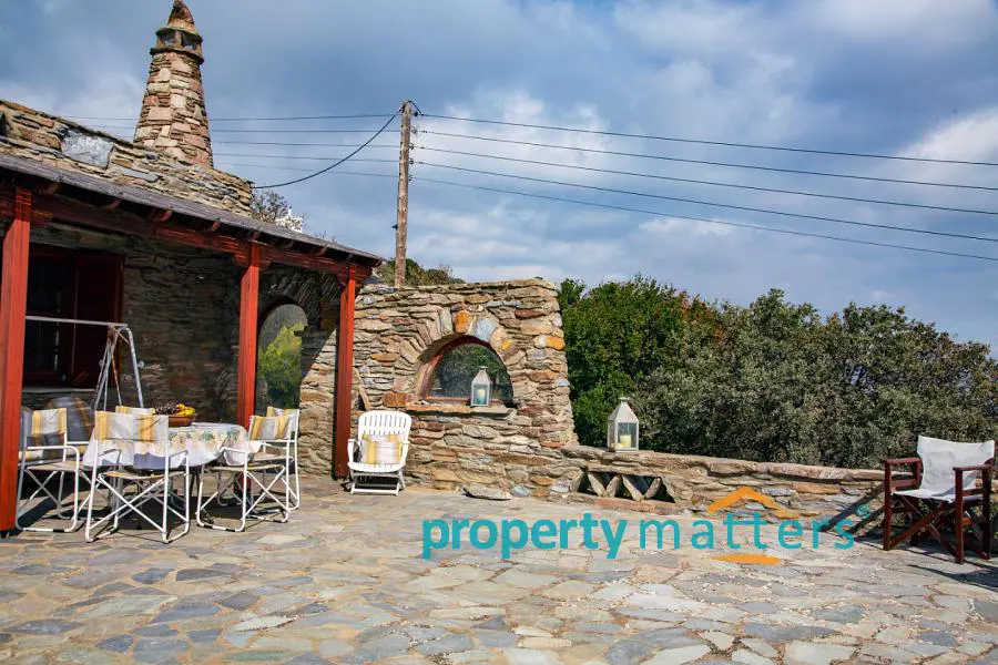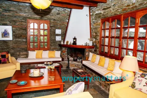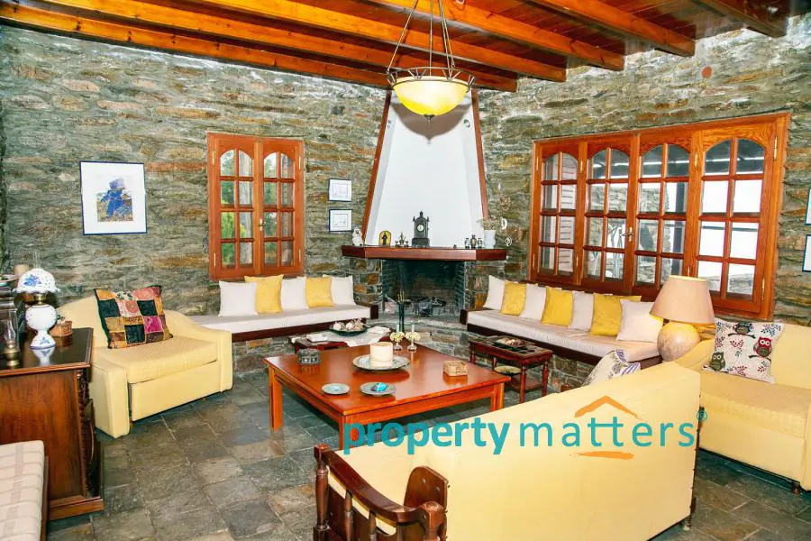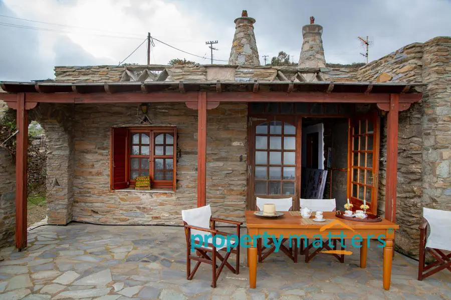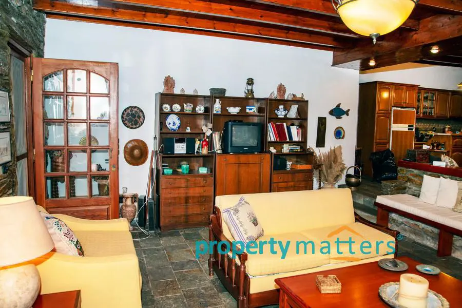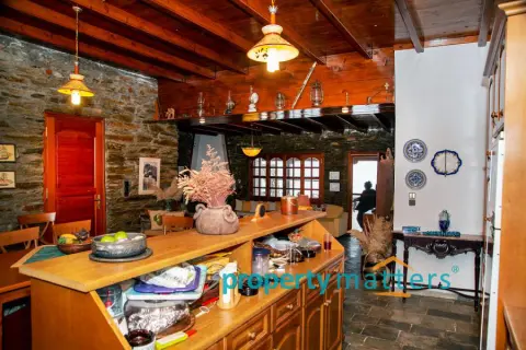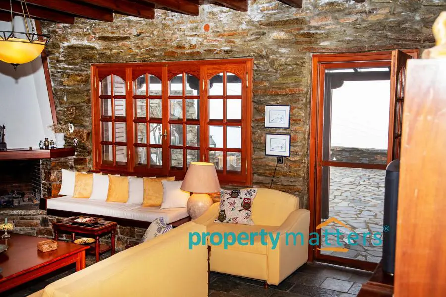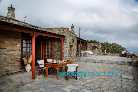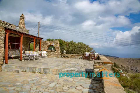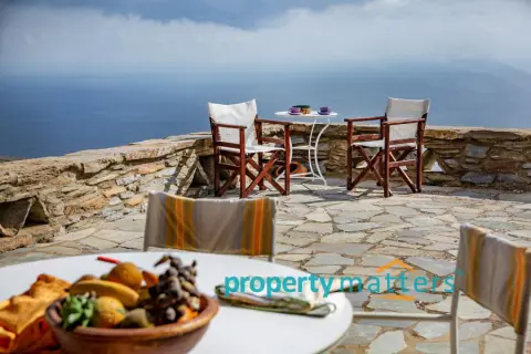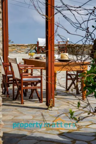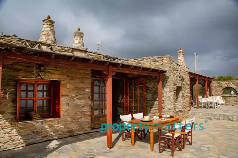 In the idyllic location of Orkos on Kea, nestled within an amphitheatrical plot of 8,250 square meters, stands an authentic stone-built residence that reflects the true essence of Cycladic architecture. Perfectly harmonized with the surrounding landscape, the property embraces its guests with serenity and uninterrupted views of the sea, the hills, and its magnificent expansive terraces. The interior unfolds on a single level (218 sq.m.) and features four bedrooms, three bathrooms, and an additional guest WC. The living room, centered around a traditional fireplace, radiates warmth and serves as the heart of the home. The kitchen and reception areas open onto spacious terraces, allowing natural light and panoramic views to fill every moment of the day. The utility spaces are located on the lower level (30 sq.m.). Stone, wood, and earthy tones prevail in every detail, highlighting the authentic character of the residence. Outdoors, wide terraces with sitting areas and a built-in BBQ create a natural extension of the house and provide the ideal setting for relaxation against the backdrop of the Aegean Sea. The simplicity and understated elegance of the landscape make this property truly unique. The residence in Orkos is a rare opportunity for those seeking authenticity, tranquillity, and a genuine connection with the Cycladic landscape. More than just a holiday home, it is a retreat of life-long value, offering the experience of a true destination. Orkos is a picturesque area on Kea, renowned for its authentic Cycladic atmosphere and serene natural beauty. Located on the northern coast of the island, near the settlement of Velado, it is accessible via Route 11 from Ioulida, passing through Stegadi and the charming chapel of Panagia Grikou. The area is characterized by gentle slopes, lush vegetation, and traditional architecture, creating a sense of tranquility and seclusion. Orkos Beach features soft sand and crystal-clear waters, perfect for peaceful moments by the sea. For hiking enthusiasts, the region offers scenic trails such as the Astra-Orkos path, which winds through verdant landscapes and provides stunning panoramic views. Orkos is ideal for those seeking authenticity, tranquility, and close contact with nature, away from the more touristy areas of the island.