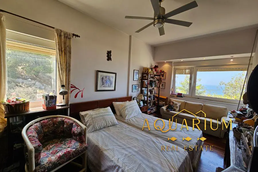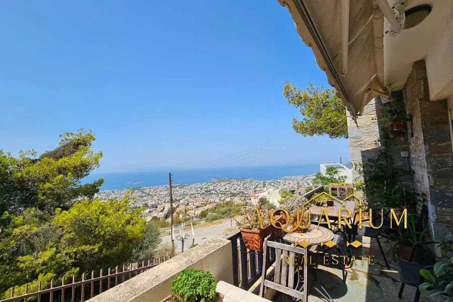 Voula-Panorama detached house of three levels with a total area of 270 sq.m. on a plot of 345 sq.m. Unique panoramic sea view in most places. Main entrance to the elevated ground floor where the dining-living room, 1 utility room, kitchen and wc are located. On the first floor, 3 comfortable bedrooms, 1 dressing room and 2 bathrooms. In the semi-basement, an independent auxiliary space of 40 sq.m. with kitchen and bathroom. Oil heating per level. Open parking space. Distance from the sea 3 km, distance from the airport 23 km.