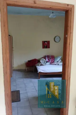 House for sale in Foloi, 105 sq.m, built in 1950, 3 rooms, Ground Floor. Available now with outdoor parking. Features mosaic floors, wooden window frames, and is currently being issued an energy class. Zoned for residential use with a dual-aspect, frontal position and access from asphalt road. Includes bathroom, storeroom, and veranda. Bright and pet-friendly. Property ID: 607.
