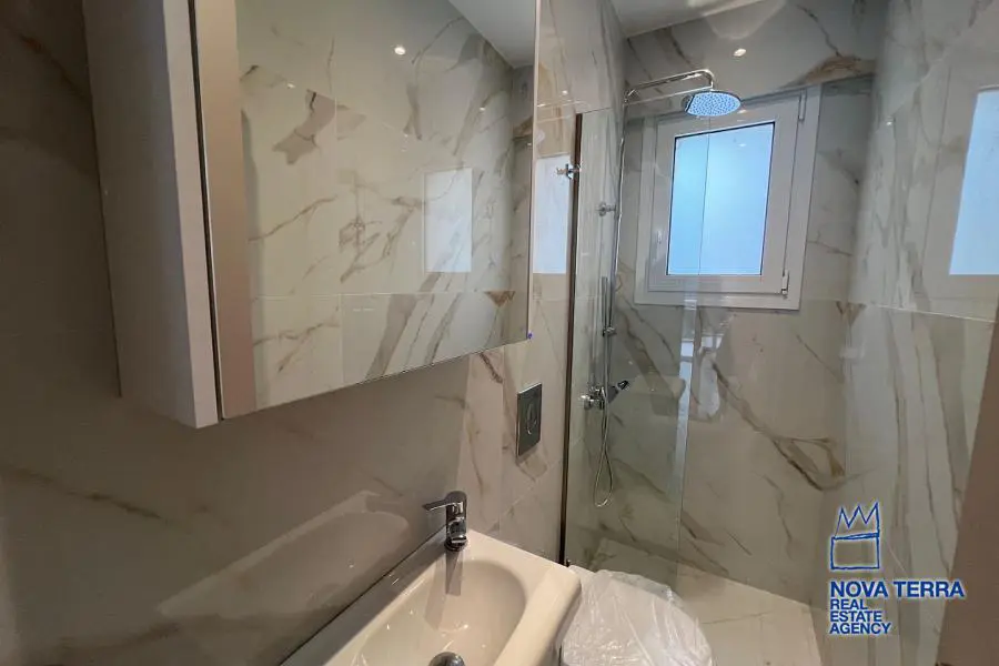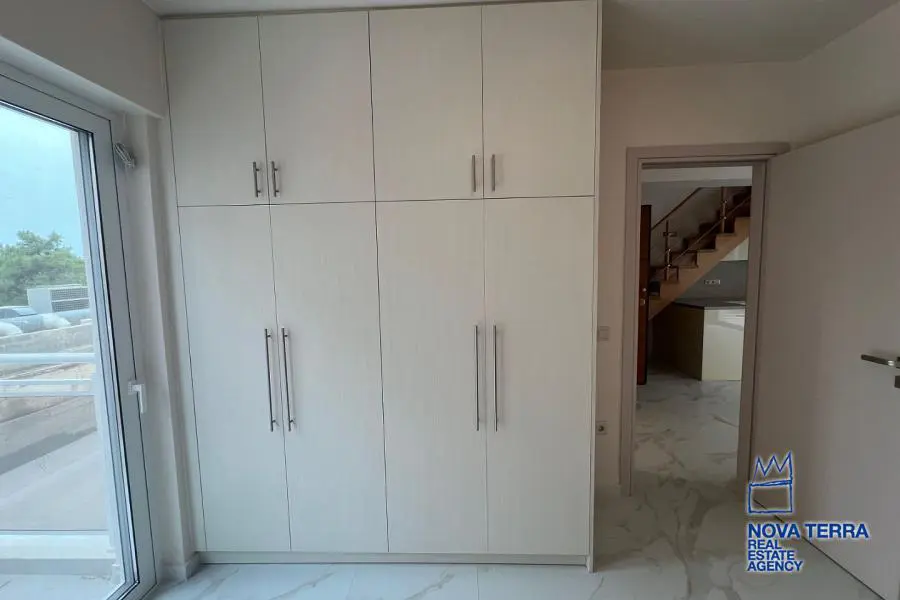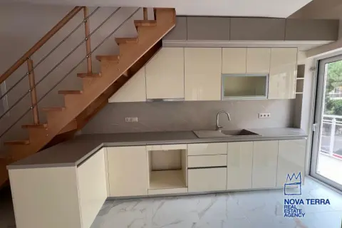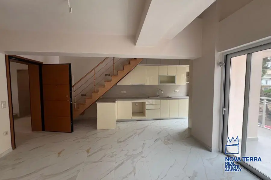 GLYFADA - KENTRO, Duplex / Triplex Apartment,, Sale, 88 sq.m, on a plot of 800 sq.m, year built 2022, 2 rooms, 1st, 2nd, Various Characteristics: Balcony, Bath, Escalator, Fire Place, Garden, Kitchen, Living room, Store Room, Toilet, Heating: Air Conditioning, Autonomous Gas Heating, Autonomous Heating-central systm, Aluminium panels, Bright, Double-glazing, Facade, Luxury, Minimal, Newly built, Painted, Security Door, In perfect condition: : : : Parking area: Garage, Energy class: A. property ID: 49926, www.nova-terra.gr