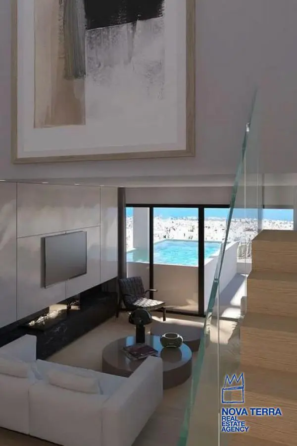 GLYFADA - TERPSITHEA, Duplex / Triplex Apartment,, Sale, 77 sq.m, year built 2023, 2 rooms, 1st, 2nd, Various Characteristics: Balcony, Bath, Escalator, Fire Place, Kitchen, Living room, Store Room, Heating: Air Conditioning, Autonomous Heating-central systm, Access road, Aluminium panels, Bright, Double-glazing, Facade, From Side to Side, Luxury, Minimal, Newly built, Painted, Residential area, Screens, Security Door, Solar Heating, In perfect condition: : : : Parking area: Garage, Energy class: A. property ID: 48241, www.nova-terra.gr