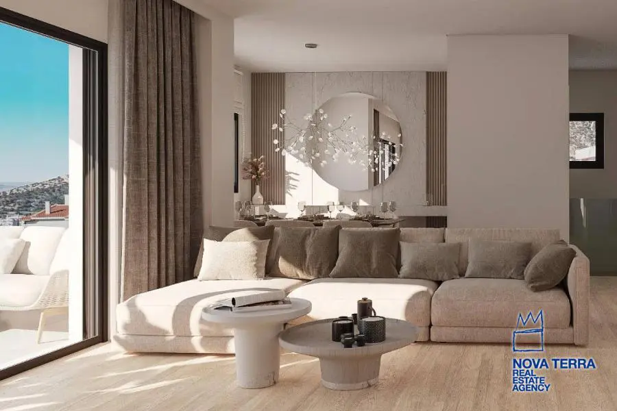 GLYFADA - TERPSITHEA, Duplex / Triplex Apartment,, Sale, 104 sq.m, year built 2025, 3 rooms, Ground Floor, 1st, Various Characteristics: Balcony, Bath (2), Escalator, Fire Place, Kitchen, Living room, Store Room, Swimming Pool, Toilet, Flooring: Wooden floor, Heating: Heating pump, Access road, Aluminium panels, Bright, Electric Roller Windows, Facade, From Side to Side, Luxury, Minimal, Night charge, Painted, pets allowed, Residential area, Screens, Security Door, Weekend Residence, In perfect condition: Pets allowed: Satellite dish: For investment: Parking area: Parking, Energy class: A. property ID: 51087, www.nova-terra.gr