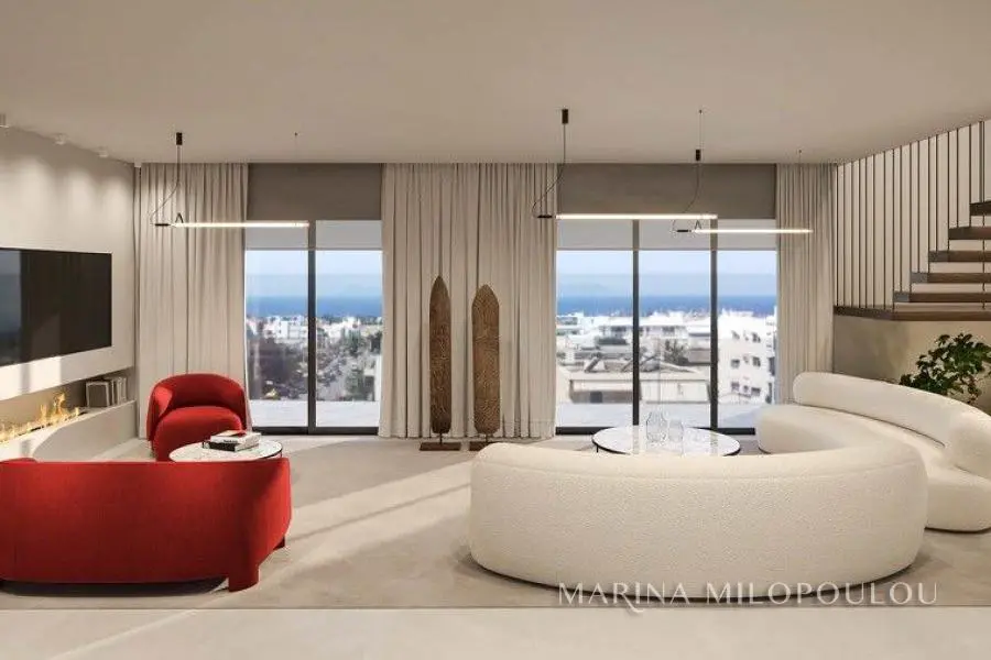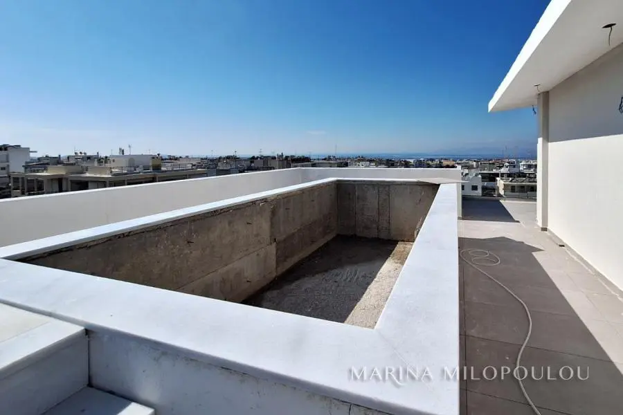 GLYFADA - Evryali, a newlybuilt, corner Μaisonette, 194 sqm on the 3rd - 4th (4th-5th elevation) with private pool and sea view and to the Hellinikon park. Southwest orientation. - 4th floor, reception - dining area (with gas fireplace), open plan kitchen, 2 master bedrooms, 1 wc and 2 verandas. - Attic, (accesed only by the internal staircase) 2 master bedrooms - 1 with walk-in closet. Direct access to the terrace with the 10 sqm pool and sea and mountain view. It is part of a 5-storey corner building with a total of 8 properties, energy class (A++) which has photovoltaic panels. The apartment features a heat pump, fan coil, underfloor heating, triple energy solar panels for hot water supply, high-end thermal facade and heavy-duty thermal break frames with triple glazing, "Smart Home" technology, fire safety system, security alarm and cameras. This apartment also comes with 2 basement parking spaces and a storage room. The materials of the interior construction are configured according to the buyer's taste and the apartment will be delivered 2 months after purchase. Zone price 2250€. It is located on a main road, 80 meters from Vouliagmenis Avenue and a local market, 800 meters from the Elliniko metro station, 1.3 km from the current entrance to the Metropolitan Park, 2.5 km from Glyfada beach, 3 km from the shopping area of Glyfada and 24 km from the intern. airport. Εstimated delivery 07/2025.