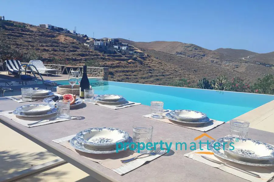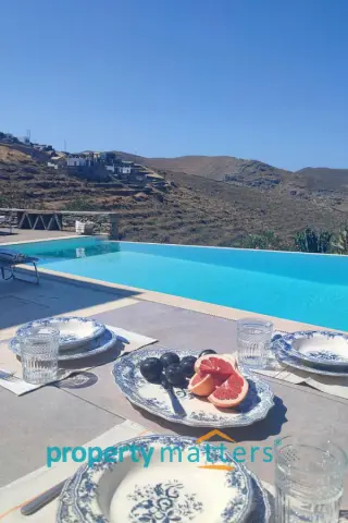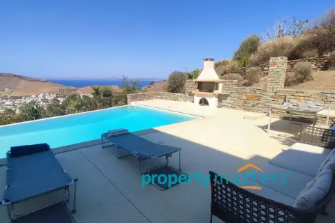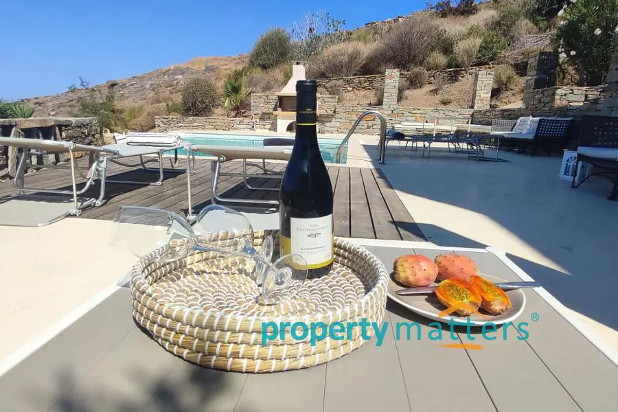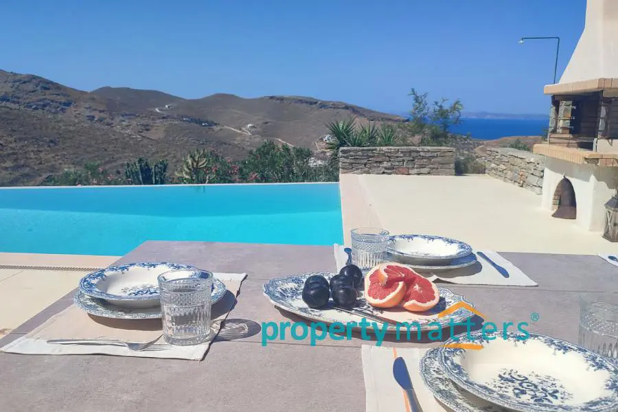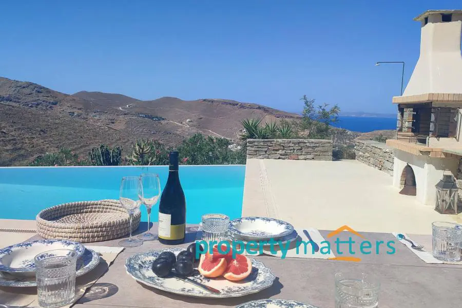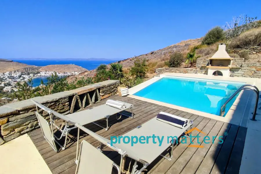 Set on a generous 1,400 sq.m. plot, this two-level villa offers the perfect blend of comfort, elegance, and outdoor living. Ground Floor: A bright and inviting living room with a cozy fireplace seamlessly connects to an open-plan kitchen and dining area. A guest w/c is also located on this level. First Floor: Two well-appointed bedrooms share a modern bathroom, offering privacy and comfort. Guest Suite: Separate from the main house, an independent guest bedroom features a spacious en-suite bathroom—ideal for hosting family and friends. The outdoor areas are designed for relaxation and entertainment. The landscaped garden boasts a sparkling swimming pool, a BBQ area, and both seating and dining spaces, perfect for enjoying warm days and evenings. Additional features include open parking for two cars and unobstructed views of the natural surroundings. This villa combines refined interiors with exceptional outdoor amenities, making it a perfect retreat for both year-round living and holiday escapes.