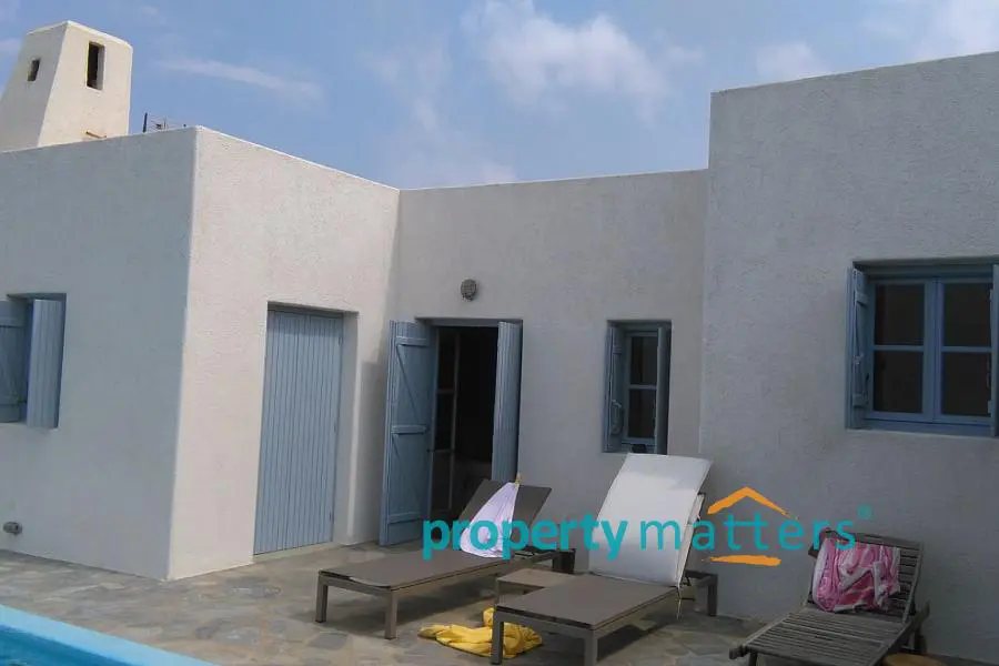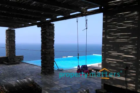 Very close to Xyla Beach, within a well-maintained residential complex, lies an elegant 140 sq.m. maisonette that perfectly combines comfort, privacy, and breath taking views of the sea and the sunset. The property is set on a 2,000 sq.m. plot and features a private swimming pool measuring 10 x 4.80 m, ideal for moments of relaxation and enjoyment of the serene island landscape. The maisonette is developed on two levels. The upper floor, with a total area of 68.27 sq.m., includes a kitchen, a bright living room with a fireplace, and a guest WC — all designed to highlight the simplicity and charm of Cycladic architecture. The ground floor, covering 71.05 sq.m., consists of three bedrooms, two bathrooms, and a storage area, offering a functional layout ideal for family living or hosting guests. Additionally, the pool’s engine room, with an area of 50.77 sq.m., also serves as extra storage space, fully accommodating the property’s practical needs. Built in 2000, the residence stands out for its privileged location, offering unobstructed sea views and easy access to the island’s natural beauty — making it an ideal retreat for those seeking tranquillity and elegance on Kea. Within the grounds, there is also a small chapel of approximately 6 sq.m., adding a unique and traditional touch to this exceptional property.