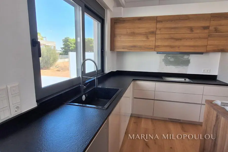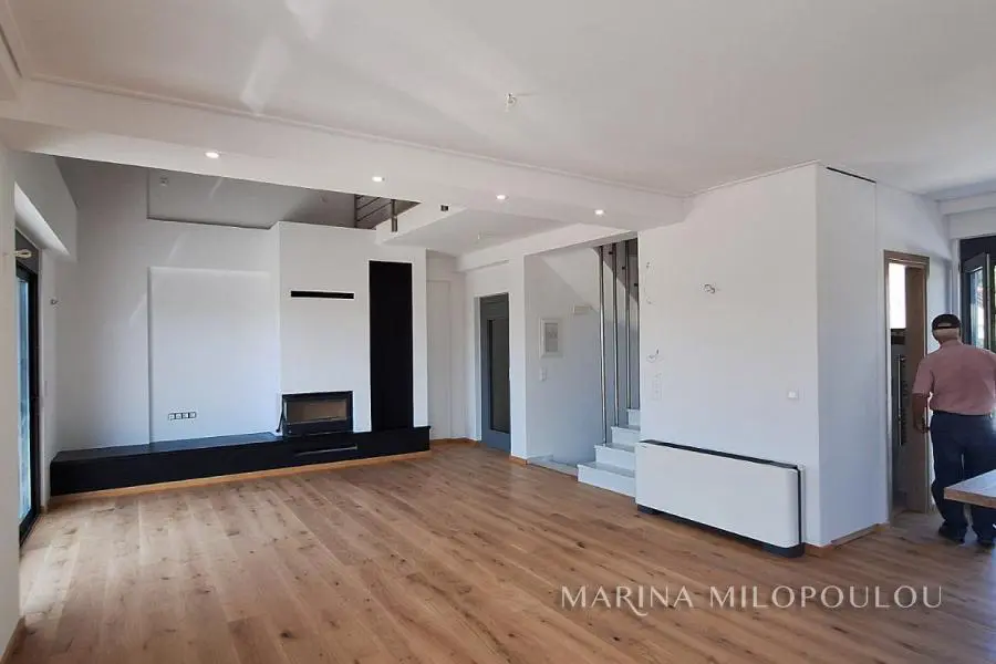 VARI - Asirmatos, a newly built, attached maisonette (loft type), total area 260 sqm, within a plot of 250 sqm, with privatre garden and swimming pool. - Elevated Ground Floor, the reception- dining area, open plan kitchen, 1 wc. Direct access to the garden with the pool. - Semi-basement, a sunny, single space living room/playroom/guest room with pre-instolation for kitchen, 1 bathroom and possibility for an extra bedroom. Exit to a ground floor veranda and to the back garden and the pool area (5 steps up). - 1st floor, loft, 2 spacious bedrooms, 1 bathroom (there is the potentianl for 1 more master bedroom) - 2nd floor, attic with bathroom, laundry space and exit to the large roof garden, which has plumbing and electrical installation. Open horizon and sea view. The residence fetaures private elevator for all levels, marble stair case, energy-efficient glass and aluminum thermal breaks, energy fireplace, screens, electric shutters, VRV heat pump for cooling/heating, solar water heater, wide oak floors. Zone price €1800. Very quite residential neighborhood, 200 meteres form a local market, very close to public schools, 1 km from the organized "Varkiza Resort" beach and from the center of Varkiza, 6,5 km from private bilingual schools of Vari and 18 km from the intern. airport.
